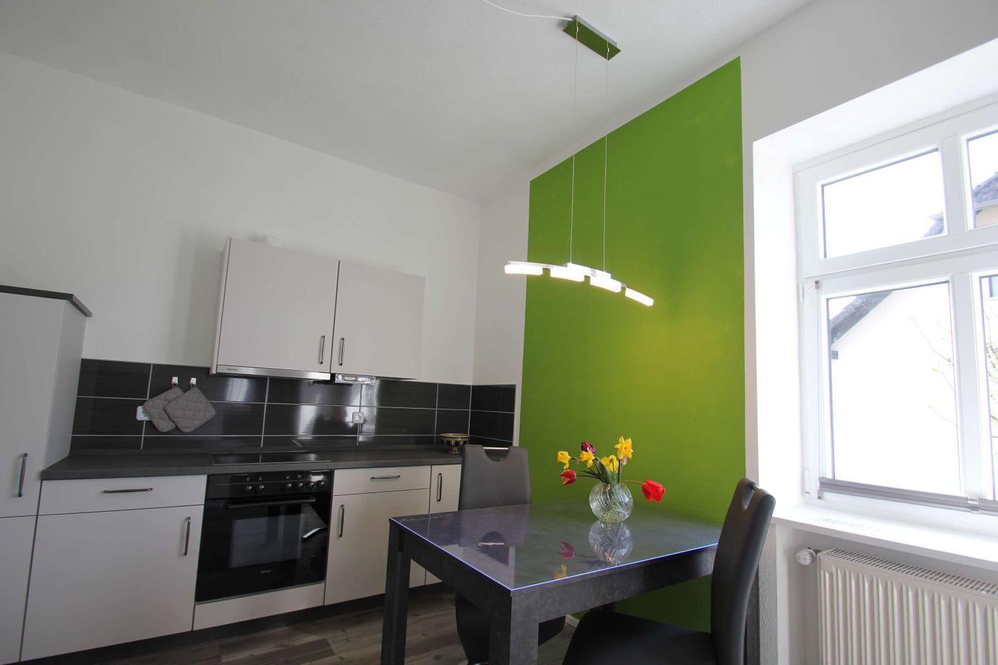 KÜCHE // Sitzgelegenheit, Küchenzeile, 4-Platten Ceranherd, Spülmaschine, Kühlschrank mit Gefrierfach, Backofen, Toaster, Wasserkocher, Kaffeemaschine, reichlich Besteck, Geschirr und Küchenutensilien, Radio ++