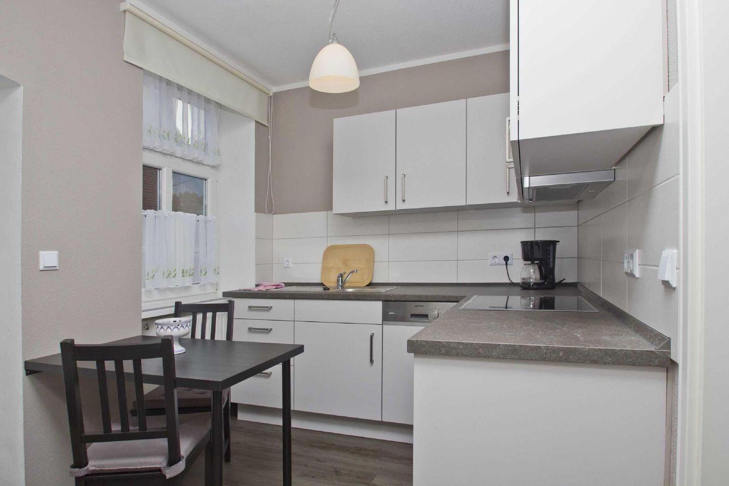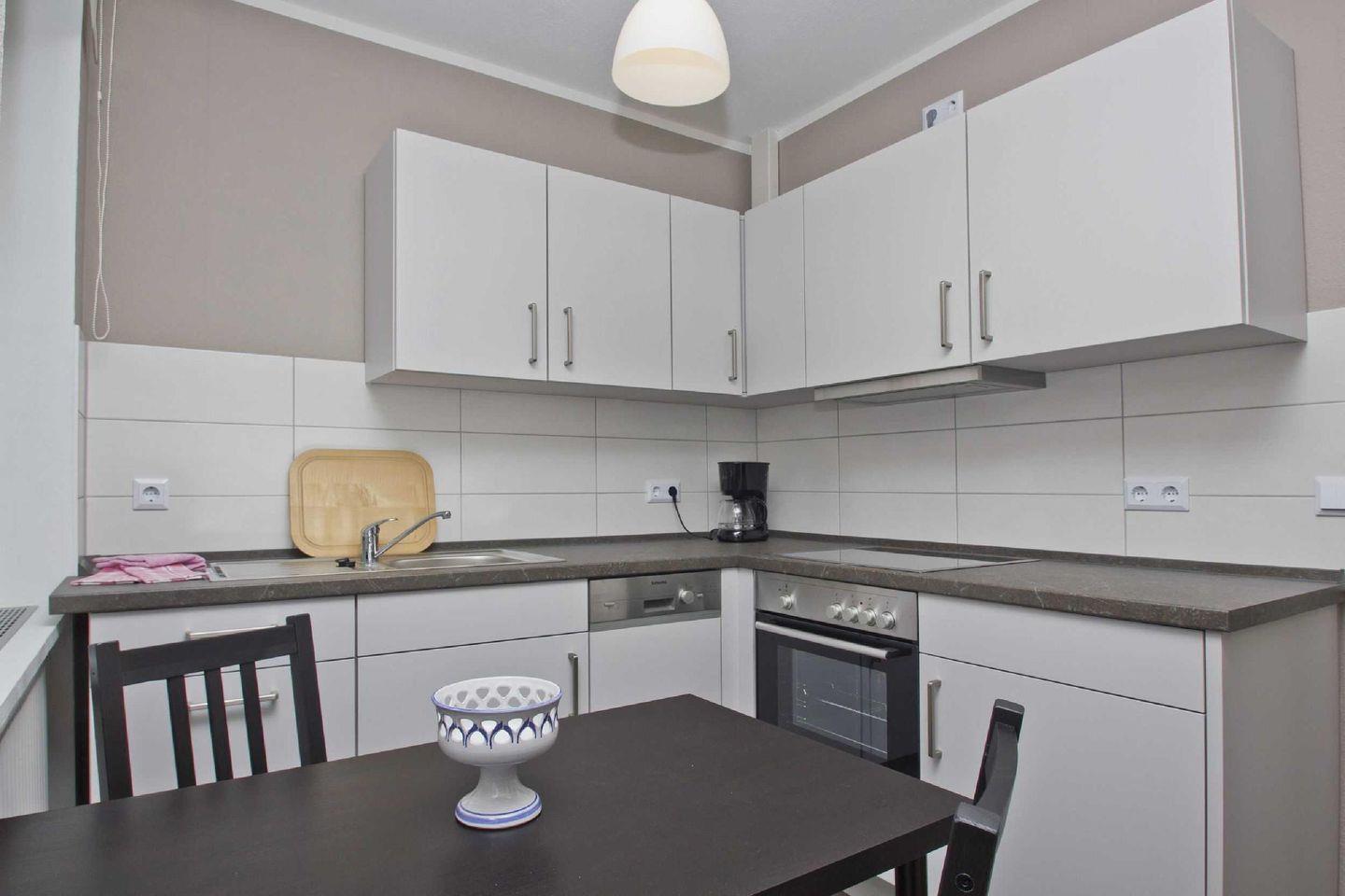 KÜCHE // Sitzgelegenheit, 4-Felder Ceranherd, Spülmaschine, Kühlschrank mit Gefrierfach, Backofen, Toaster, Wasserkocher, Kaffeemaschine, reichlich Besteck, Geschirr und Küchenutensilien, Radio ++