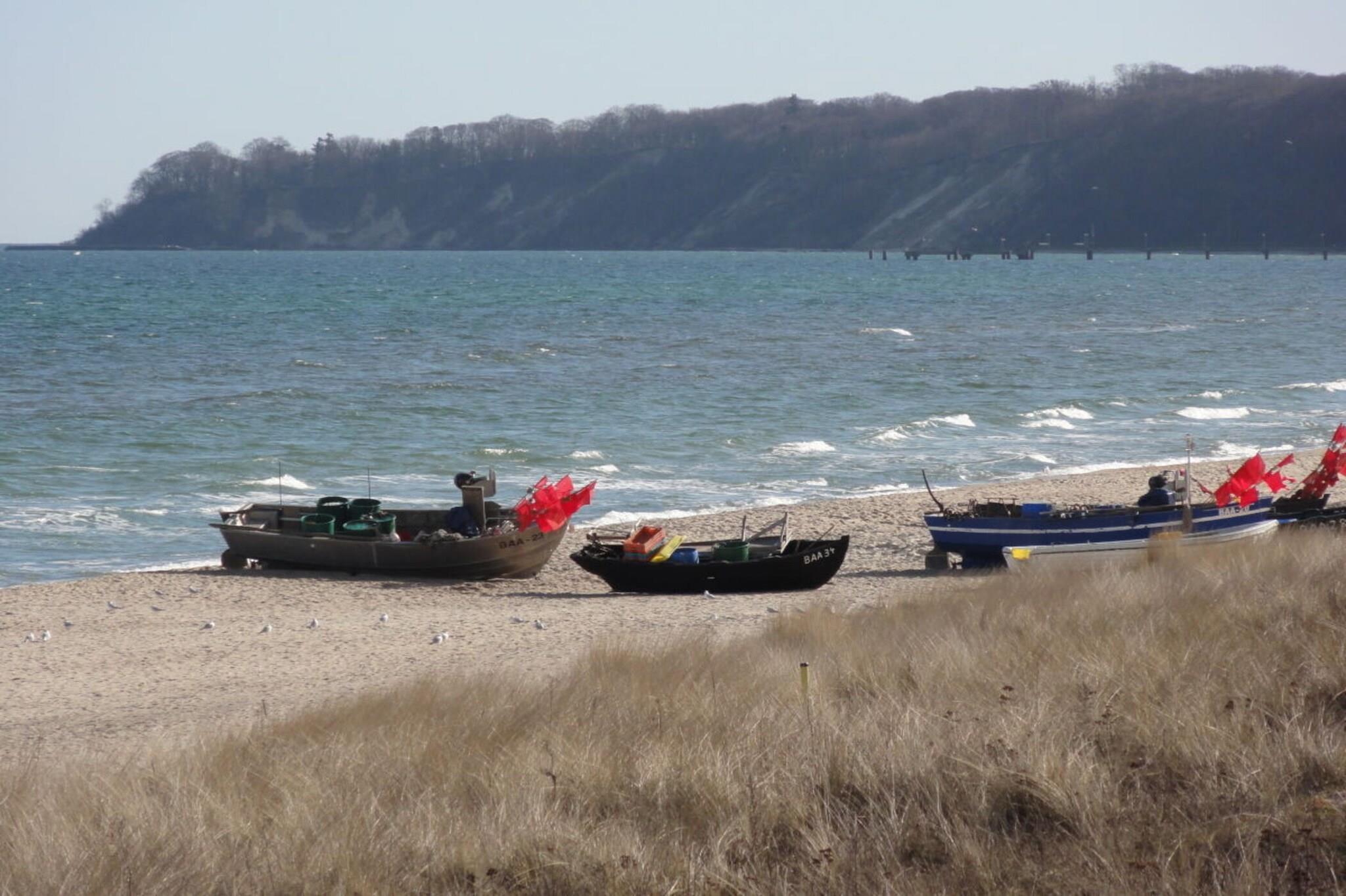 Helle 3-Zimmer-Ferienwohnung mit Südterrasse und kleinem Meerblick auf Rügen.