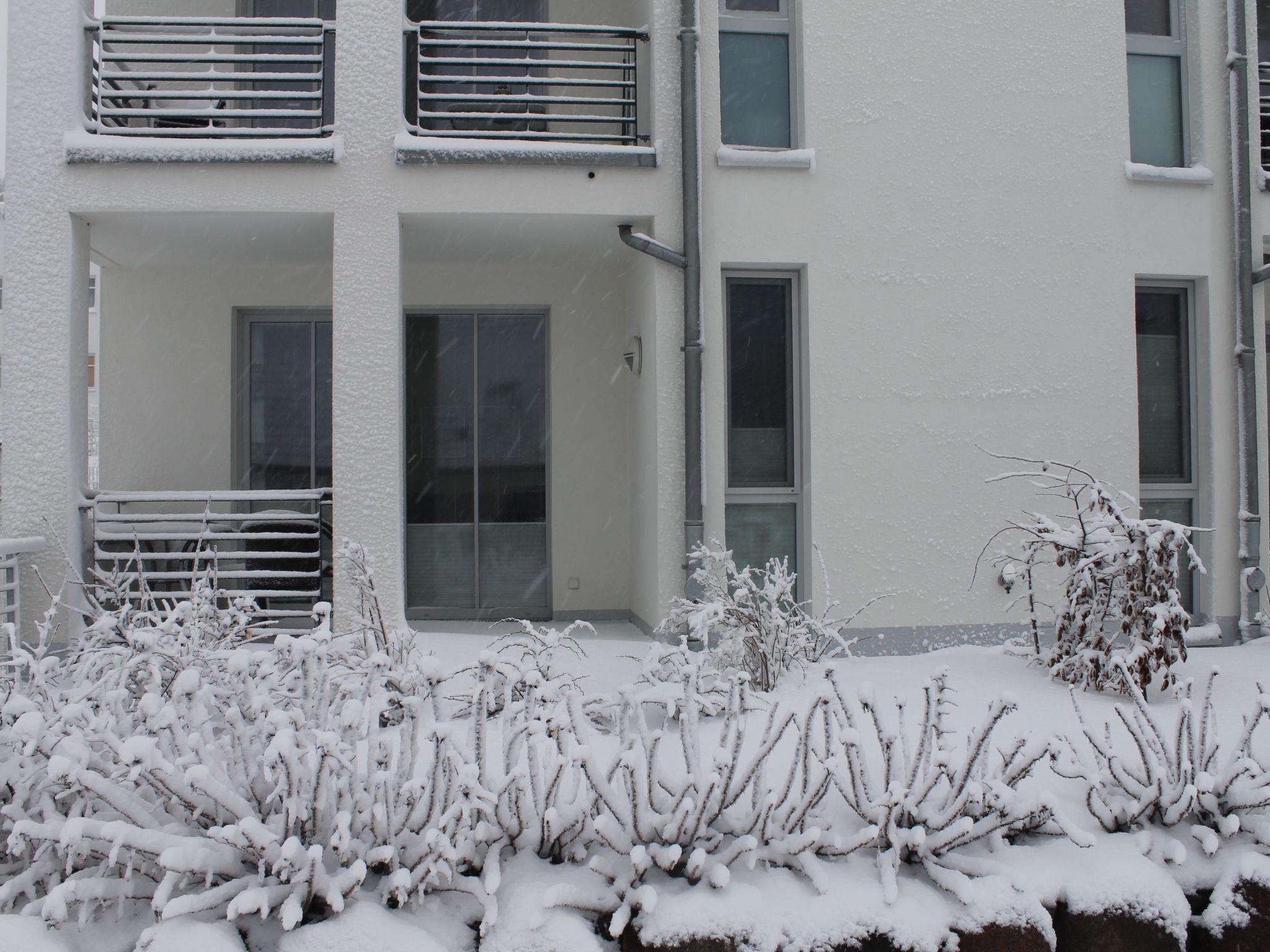 Auf der teilweise überdachten Terrasse mit Ost-Südost Ausrichtung kann der Tag mit einem guten Frühstück in der Morgensonne beginnen. Über einen Fahrstuhl ist der zur Wohnung gehörende Garagenstellplatz Nr. II im Untergeschoss zu erreichen. Dort befinden sich auch ein gemeinschaftlich genutzter Fahrradabstellraum und ein Raum mit Münzwaschmaschine und Münztrockner.