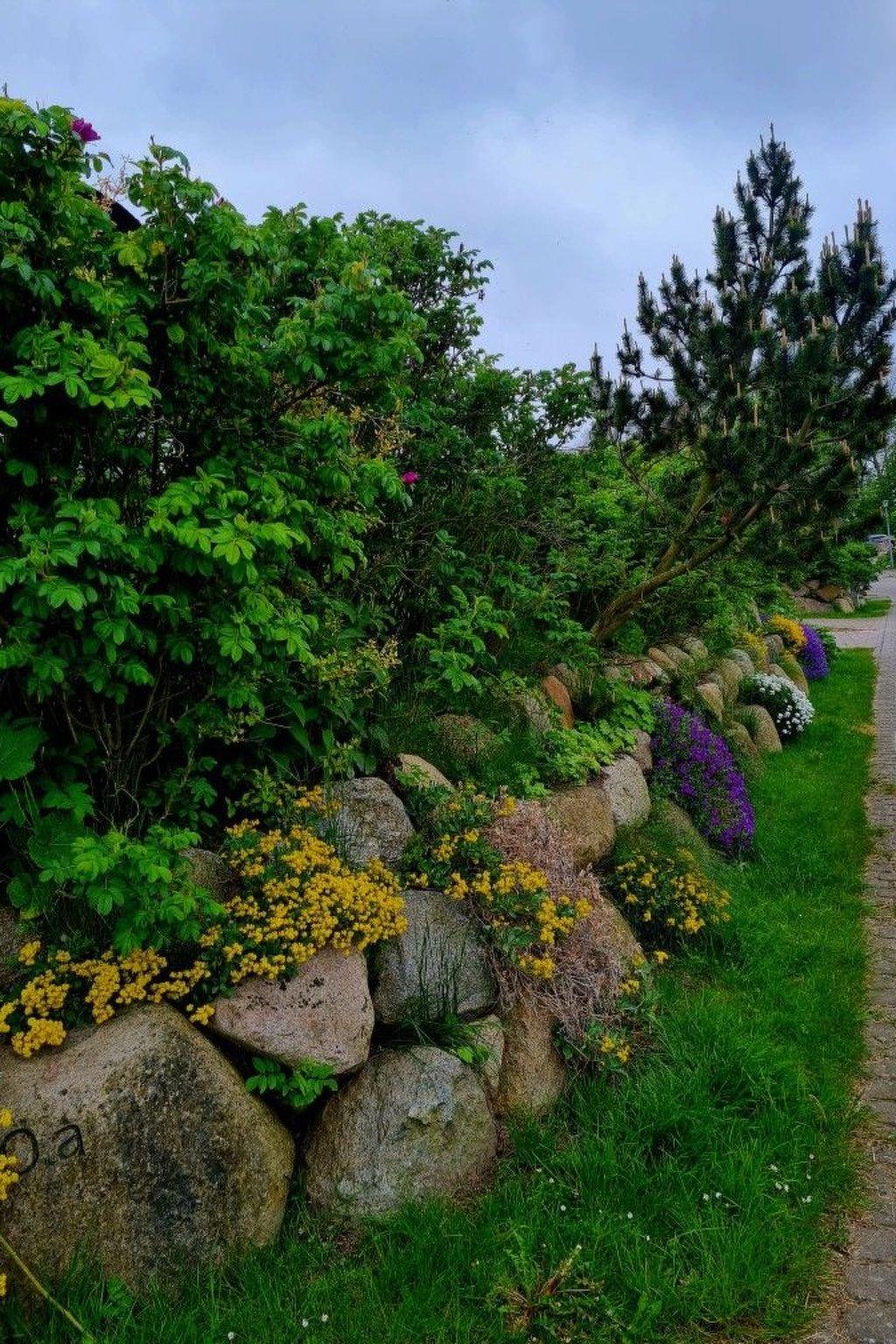 Der Außenbereich wurde liebevoll angelegt und wird von einem Friesenwall mit Heckenrosen umgeben. Genießen Sie den Garten mit zwei Terrassen und Gartenmöbel (Mai-Oktober) mit eigenem Strandkorb.