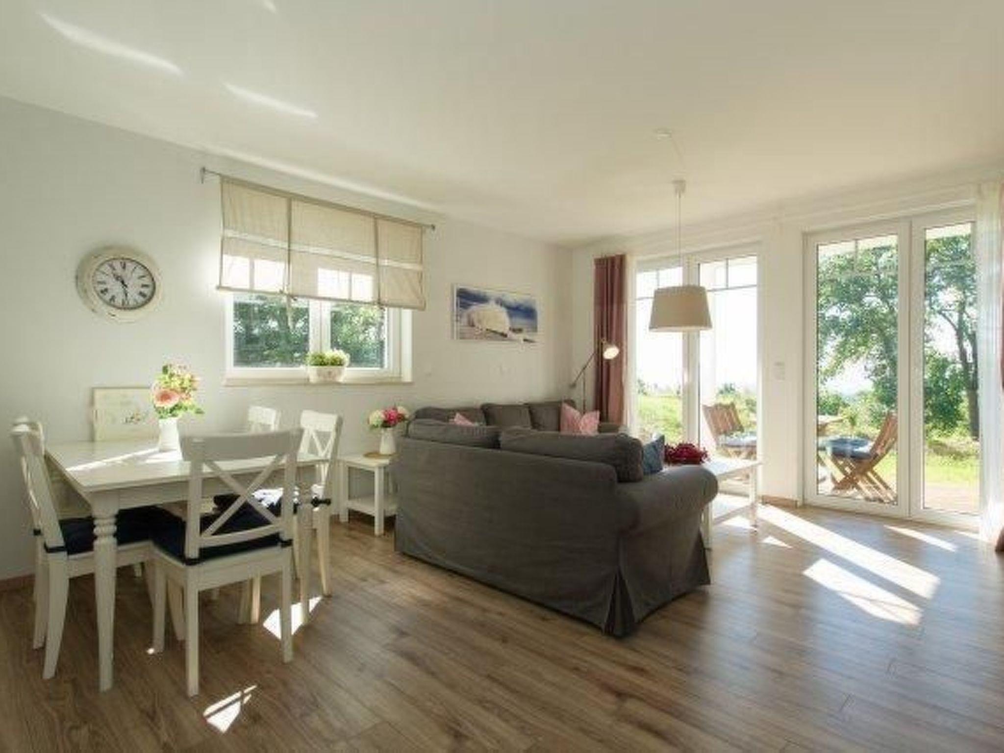 Die großzügig geschnittene 3-Raum-Wohnung ist modern und hochwertig eingerichtet und verfügt über eine Terrasse mit herrlichem Blick auf den Göhrener Südstrand.Fahrräder können außerhalb des Hauses in einem Fahrradschuppen abgestellt werden.Ein kostenloser Parkplatz pro Wohnung steht jedem Gast direkt am Haus zur Verfügung. Kostenloser W-LAN in der Wohnung vorhanden. Wohnfläche: 75 m² 3-Raum-Wohnung Großer Eingangsbereich mit großem Kleiderschrank, Garderobenständer und Schuhschrank. Großzügiger Wohnbereich mit Couch und Couchtisch, Anrichte mit großem Flat-TV sowie CD-Radio-Anlage, Esstisch mit 5 Stühlen. Im Wohnraum integrierte Einbauküche, ausgestattet mit: 3-Platten-Cerankochfeld, großer Backherd, Dunstabzugshaube, Mikrowelle, Kühlschrank mit Gefrierfach, Geschirrspüler, Toaster, Kaffeemaschine, Wasserkocher und diversen Küchenutensilien. 1 Schlafzimmer mit Doppelbett (180 x 200 cm) und Flat-TV. 1 Schlafzimmer mit Doppelbett (160 x 200 cm). 1 Bad mit Dusche, WC und Fön. 1 Terrasse mit Gartenmöbeln. Die gesamte Wohnung ist mit Fußbodenheizung ausgestattet. Nichtraucher! (Auf der Terrasse kann aber gern geraucht werden.)