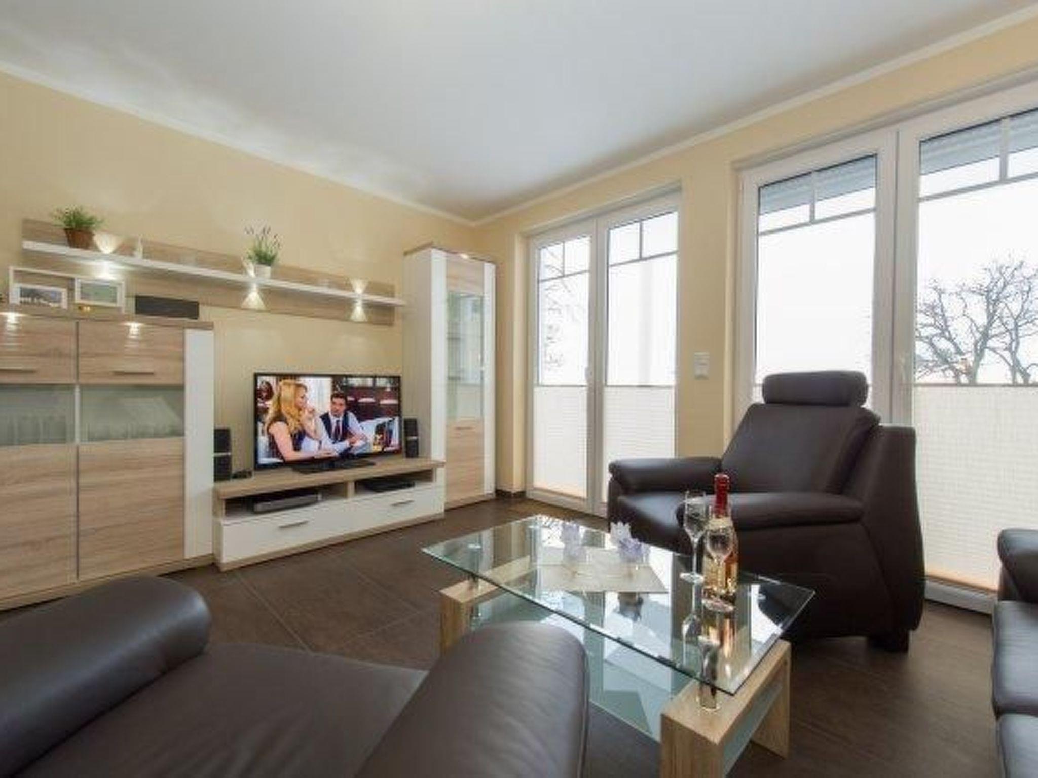 Die großzügig geschnittene 3-Raum-Wohnung ist modern und hochwertig eingerichtet und verfügt über eine Terrasse mit herrlichem Blick auf den Göhrener Südstrand.Fahrräder können außerhalb des Hauses in einem Fahrradschuppen abgestellt werden.Ein kostenloser Parkplatz pro Wohnung steht jedem Gast direkt am Haus zur Verfügung. Kostenloser W-LAN in der Wohnung vorhanden. Wohnfläche: 82 m² 3-Raum-Wohnung Großer Eingangsbereich mit Garderobe und Schuhschrank. Großzügiger Wohnbereich mit Ledersitzgarnitur und Couchtisch, Anrichte mit großem Flat-TV sowie CD-Radio-Anlage, Esstisch mit 4 Stühlen und Kamin. Im Wohnraum integrierte Einbauküche, ausgestattet mit:4-Platten-Cerankochfeld, großer Backherd, Dunstabzugshaube, Mikrowelle, großer Kühlschrank mit Gefrierfach, Geschirrspüler, Toaster, Kaffeemaschine, Wasserkocher, Eierkocher und hochwertigen Küchenutensilien. 2 Schlafzimmer mit je einem Doppelbett (180 x 200 cm) und großem Kleiderschrank sowie Flat-TV. 1 Bad mit großer ebenerdiger Dusche, WC und Fön. 1 Terrasse mit Gartenmöbeln. Bügeleisen und Bügelbrett vorhanden. Die gesamte Wohnung ist mit Fußbodenheizung ausgestattet. Nichtraucher! (Auf der Terrasse kann aber gern geraucht werden.)