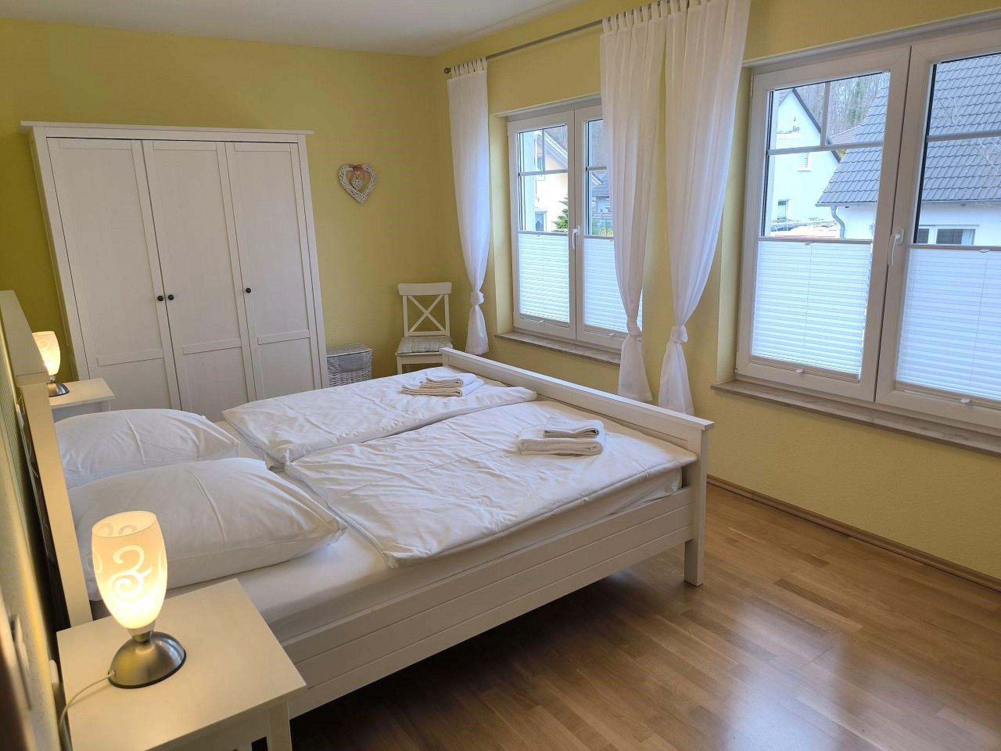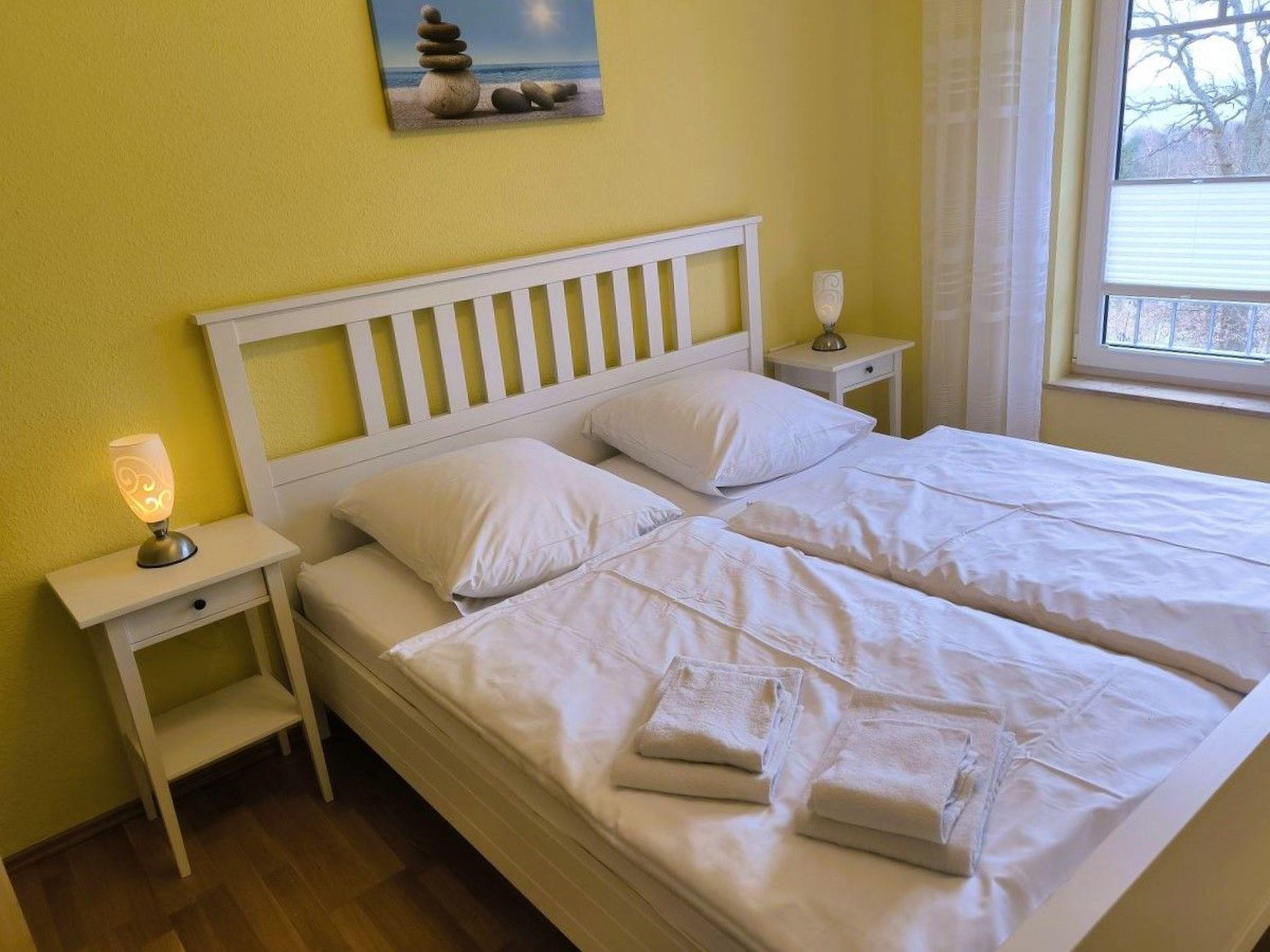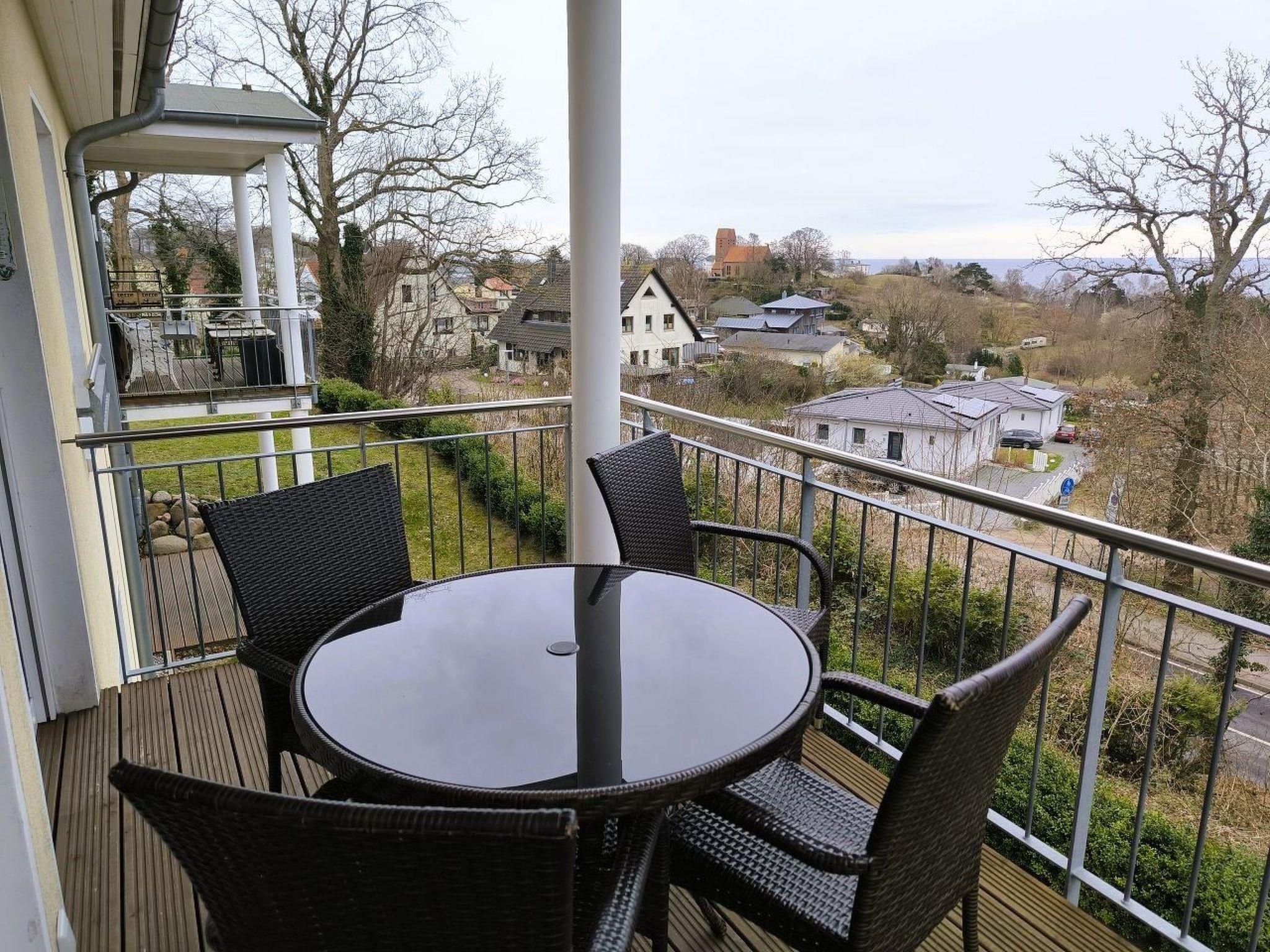 Das im Jahr 2012 neu erbaute Haus Ostseeblick befindet sich in Hanglage mit Meerblick über den Südstrand am Ortseingang von Göhren in der Feldstraße 1a und 1b. Den feinsandigen Nordstrand mit der Bernsteinpromenade sowie den Naturstrand (Südstrand) erreicht man ganz gemütlich in ca. 10 Gehminuten. Das Ortszentrum ist binnen weniger Minuten zu Fuß erreichbar. Die großzügig geschnittene 3-Raum-Wohnung ist modern und hochwertig eingerichtet und verfügt über einen Balkon mit herrlichem Blick auf den Göhrener Südstrand. Fahrräder können außerhalb des Hauses in einem Fahrradschuppen abgestellt werden. Ein kostenloser Parkplatz pro Wohnung steht jedem Gast direkt am Haus zur Verfügung. Kostenloser W-LAN in der Wohnung vorhanden. Wohnfläche: 82 m² 3-Raum-Wohnung Großer Eingangsbereich mit Garderobe, Schuhschrank und Tresor. Großzügiger Wohnbereich mit Ledersitzgarnitur und Couchtisch, Anrichte mit großem Flat-TV, CD-Radio-Anlage und Esstisch mit 4 Stühlen . Im Wohnraum integrierte Einbauküche, ausgestattet mit: 4-Platten-Cerankochfeld, großer Backherd, Dunstabzugshaube, Mikrowelle, großer Kühlschrank mit Gefrierfach, Geschirrspüler, Toaster, Kaffeemaschine, Wasserkocher und hochwertigen Küchenutensilien. 2 Schlafzimmer mit je einem Doppelbett (180 x 200 cm) und großem Kleiderschrank. Davon ein Schlafzimmer mit Flat-TV. 1 Bad mit großer ebenerdiger Dusche, Waschtisch, WC und Fön. Balkon mit Gartenmöbeln. Bügeleisen und Bügelbrett vorhanden. Die gesamte Wohnung ist mit Fußbodenheizung ausgestattet. Nichtraucher! (Auf dem Balkon kann aber gern geraucht werden.)