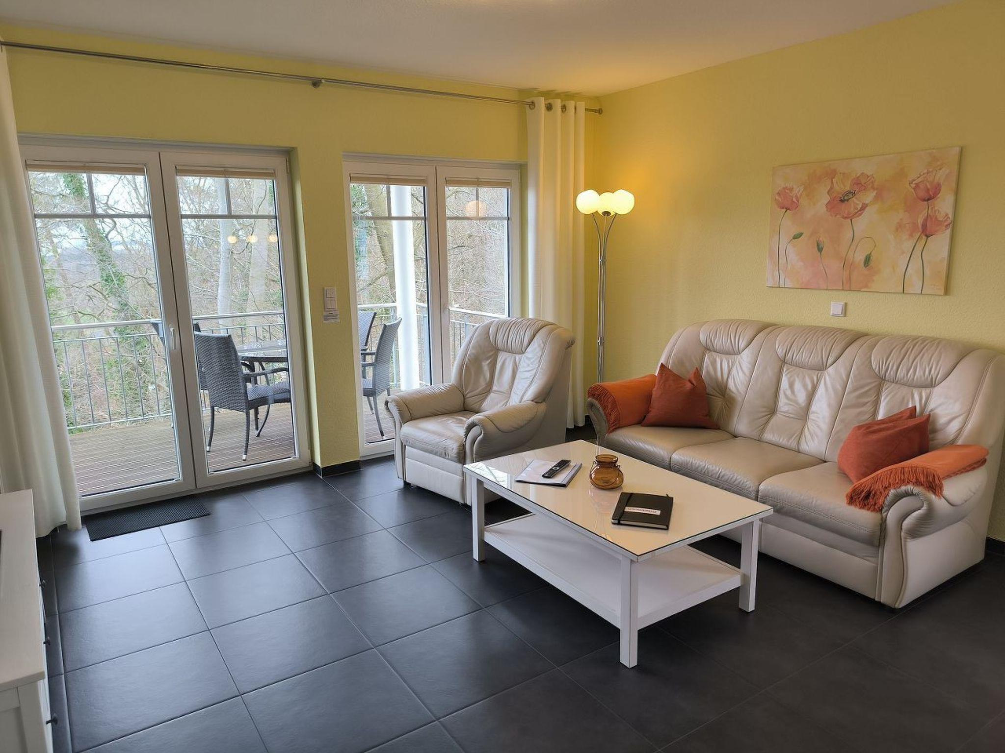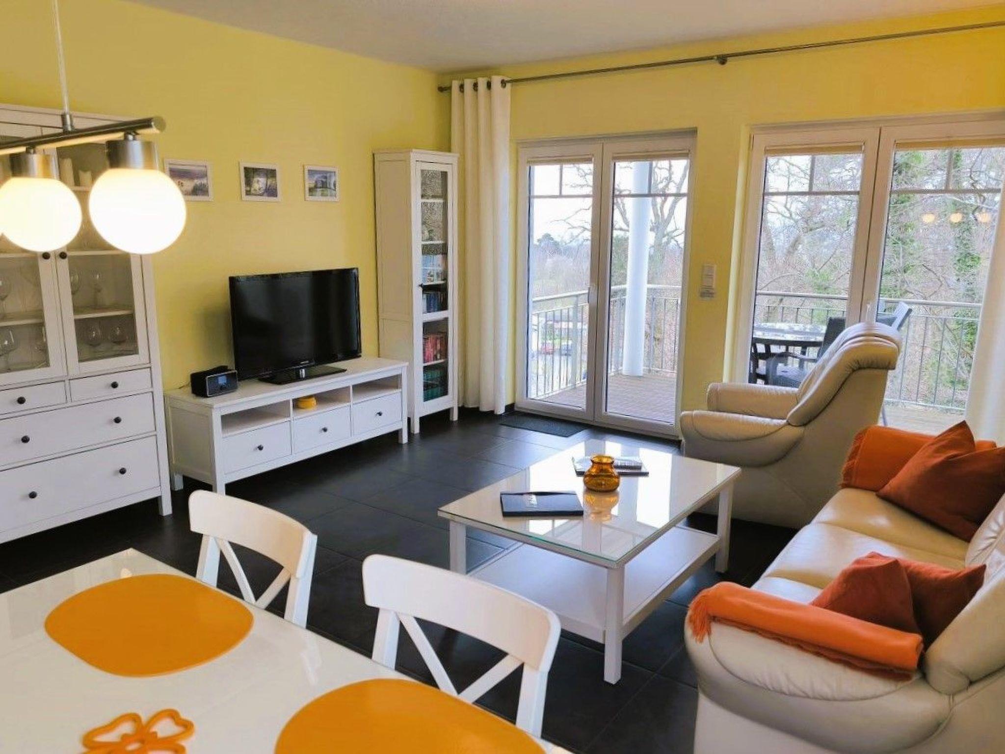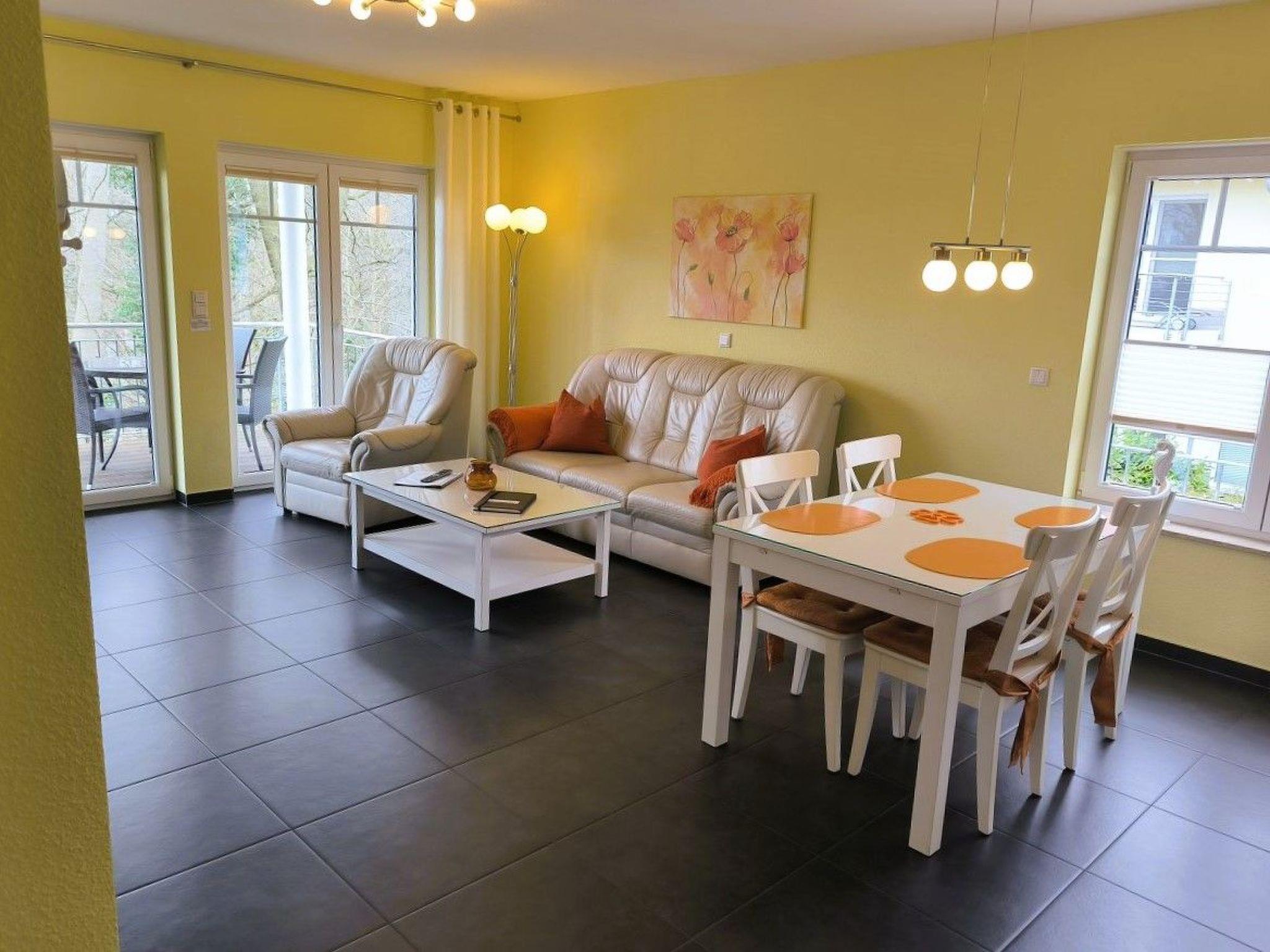 Das im Jahr 2012 neu erbaute Haus Ostseeblick befindet sich in Hanglage mit Meerblick über den Südstrand am Ortseingang von Göhren in der Feldstraße 1a und 1b. Den feinsandigen Nordstrand mit der Bernsteinpromenade sowie den Naturstrand (Südstrand) erreicht man ganz gemütlich in ca. 10 Gehminuten. Das Ortszentrum ist binnen weniger Minuten zu Fuß erreichbar. Die großzügig geschnittene 3-Raum-Wohnung ist modern und hochwertig eingerichtet und verfügt über einen Balkon mit herrlichem Blick auf den Göhrener Südstrand. Fahrräder können außerhalb des Hauses in einem Fahrradschuppen abgestellt werden. Ein kostenloser Parkplatz pro Wohnung steht jedem Gast direkt am Haus zur Verfügung. Kostenloser W-LAN in der Wohnung vorhanden. Wohnfläche: 82 m² 3-Raum-Wohnung Großer Eingangsbereich mit Garderobe, Schuhschrank und Tresor. Großzügiger Wohnbereich mit Ledersitzgarnitur und Couchtisch, Anrichte mit großem Flat-TV, CD-Radio-Anlage und Esstisch mit 4 Stühlen . Im Wohnraum integrierte Einbauküche, ausgestattet mit: 4-Platten-Cerankochfeld, großer Backherd, Dunstabzugshaube, Mikrowelle, großer Kühlschrank mit Gefrierfach, Geschirrspüler, Toaster, Kaffeemaschine, Wasserkocher und hochwertigen Küchenutensilien. 2 Schlafzimmer mit je einem Doppelbett (180 x 200 cm) und großem Kleiderschrank. Davon ein Schlafzimmer mit Flat-TV. 1 Bad mit großer ebenerdiger Dusche, Waschtisch, WC und Fön. Balkon mit Gartenmöbeln. Bügeleisen und Bügelbrett vorhanden. Die gesamte Wohnung ist mit Fußbodenheizung ausgestattet. Nichtraucher! (Auf dem Balkon kann aber gern geraucht werden.)