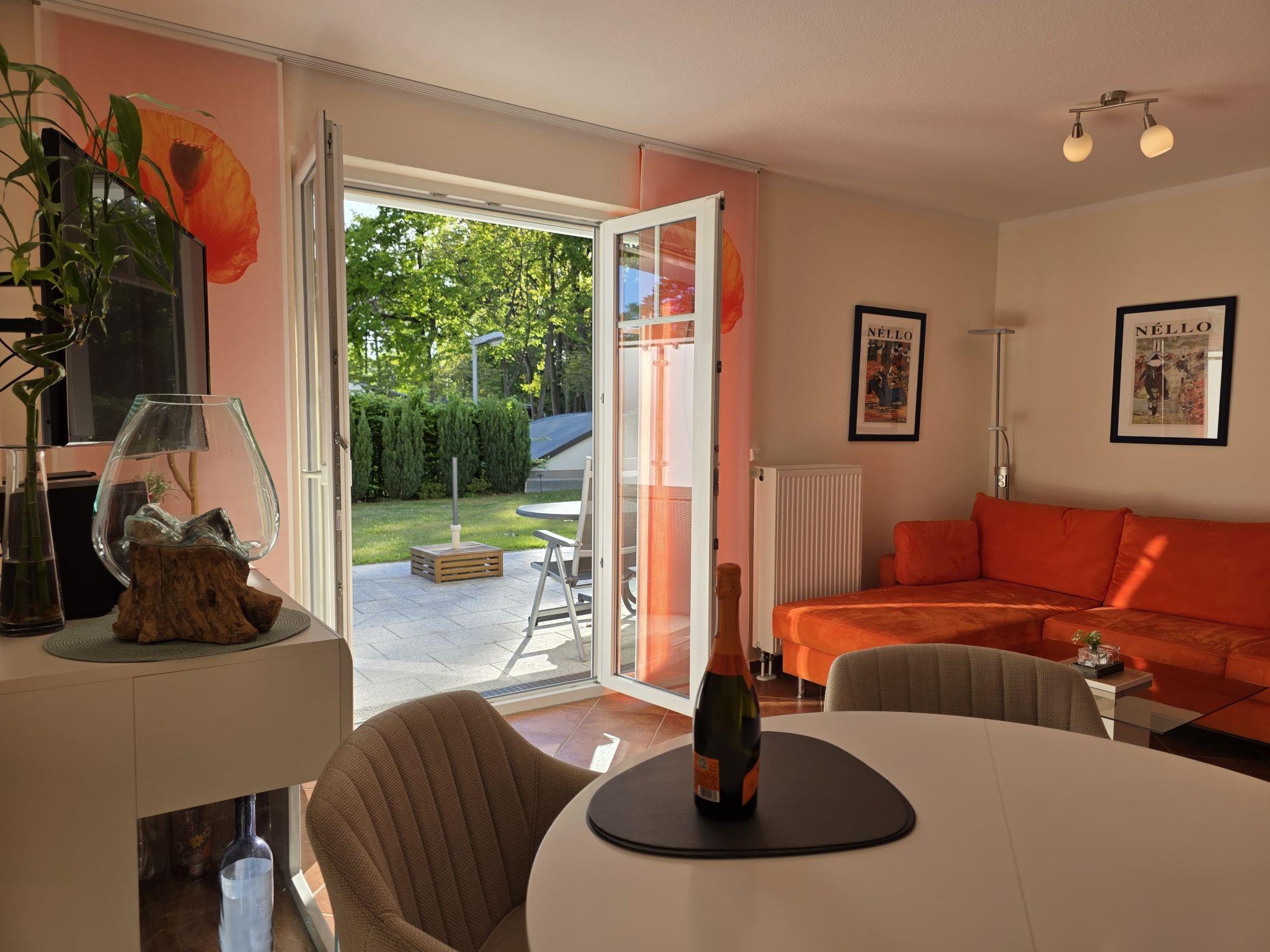 Komfortable, ruhige 2-Zimmer Ferienwohnung (58 qm inkl. 2 Terrassen) für 2 Personen im Erdgeschoß. Tiefgaragen-Stellplatz inklusive. Sehr ruhige Lage direkt am Kurpark. Nur 50 Meter bis zum Strand! Das moderne Haus, in dem sich die Ferienwohnung befindet, wurde 2005 neu erbaut. Alle Fenster besitzen Rollläden.