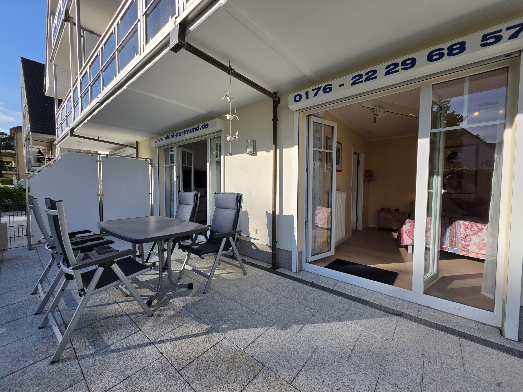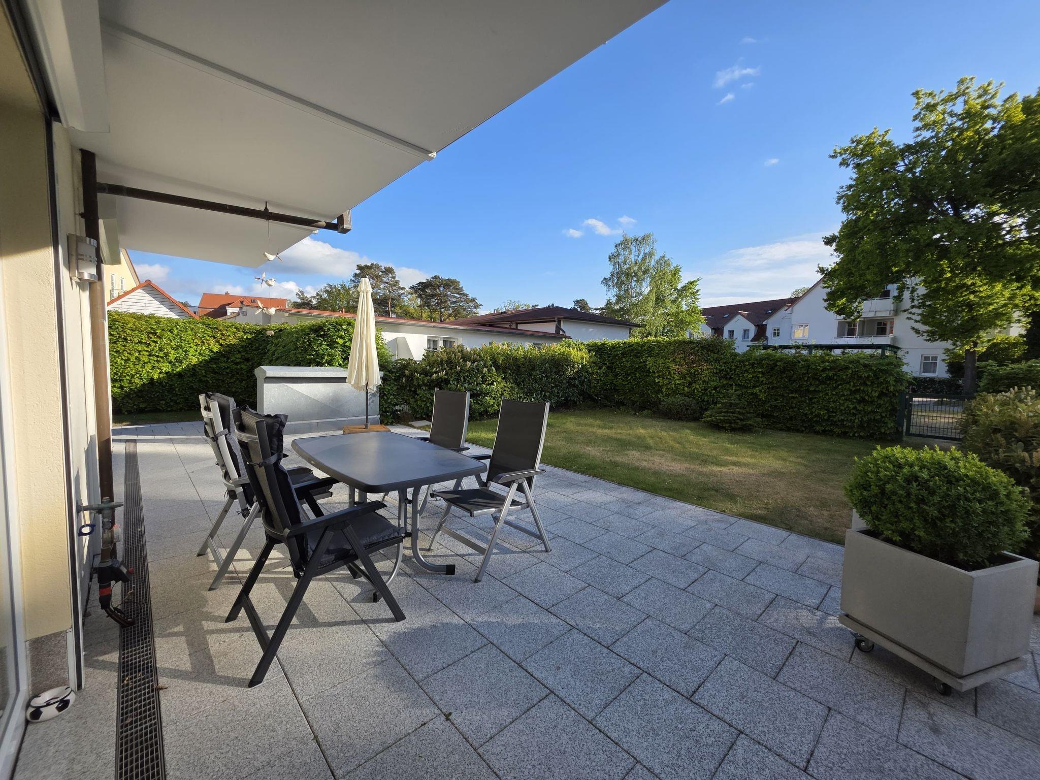 Komfortable, ruhige 2-Zimmer Ferienwohnung (60qm inkl. 2 Terrassen) für 2 Personen im Erdgeschoß. Tiefgaragen-Stellplatz inklusive. Sehr ruhige Lage direkt am Kurpark. Nur 50 Meter bis zum Strand! Die beiden zur Ferienwohnung gehörenden Terrassen (Ost- und Südwest-Lage) bieten Ihnen durch ihre optimale Lage ganztägig Sonne und die ideale Möglichkeit zur Entspannung.