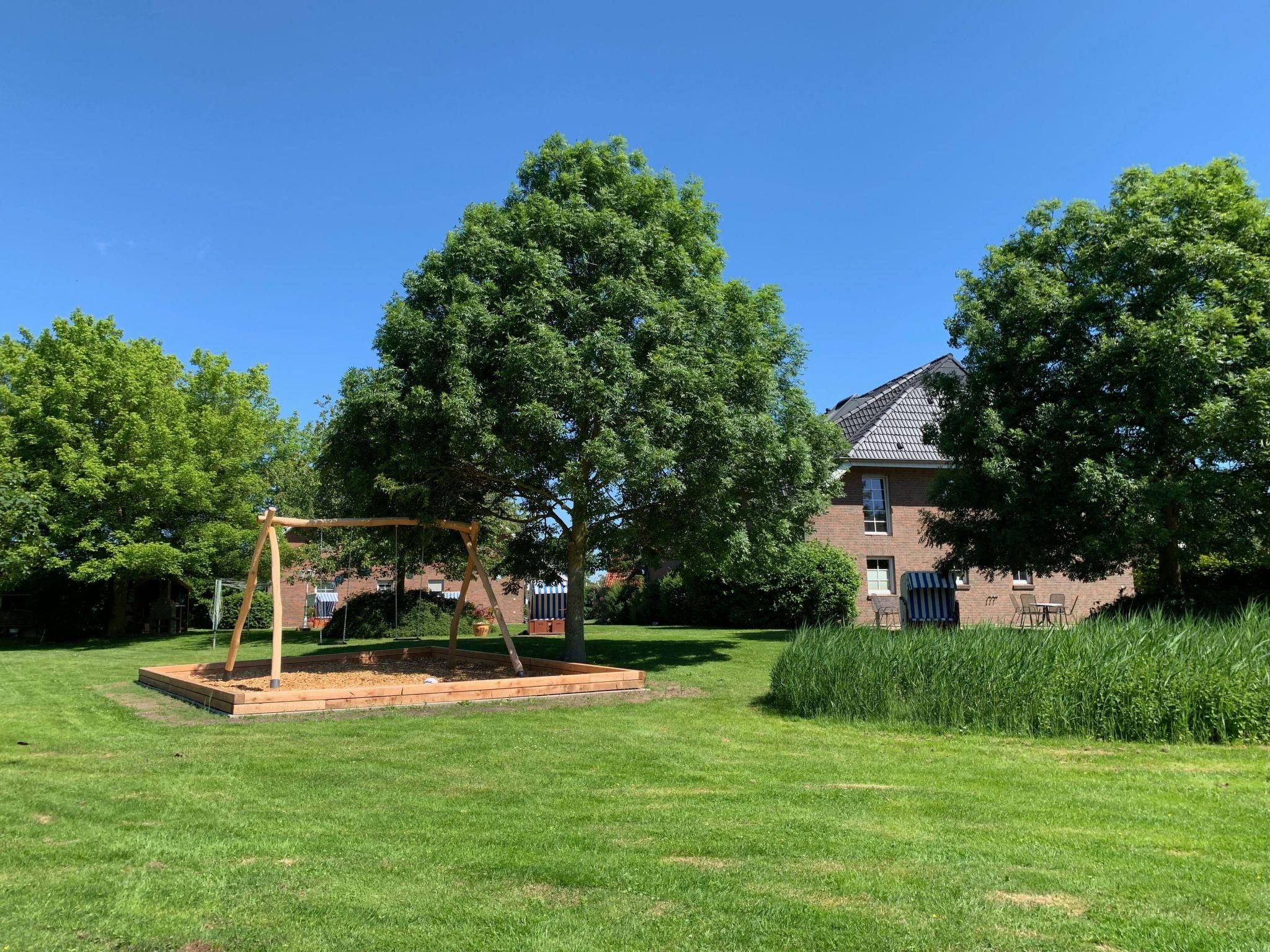 Die große Gartenanlage bietet viel Platz zum Erholen, Entspannen und Spielen. Im Garten befinden sich unter anderem Terrassen mit Sitzgruppen, Strandkörbe, Sonnenschirme und Liegestühle. Vom Garten aus genießen Sie einen wunderschönen Blick in die Natur. Außerdem gibt es einen Grillplatz im Garten. Der Kinderspielplatz für unsere kleinen Gäste ist mit einer Schaukel, einem Spielhaus, einer Rutsche und einem Sandkasten ausgestattet. Weiterhin gibt es kostenfreie Outdoor-Spiele, wie zum Beispiel Federball, Volleyball oder Fußball. PKW-Stellplätze befinden sich direkt vor dem Haus und sind für unsere Gäste kostenfrei. Für alle Raucher gibt es einen Raucher-Pavillon im Vorgarten.