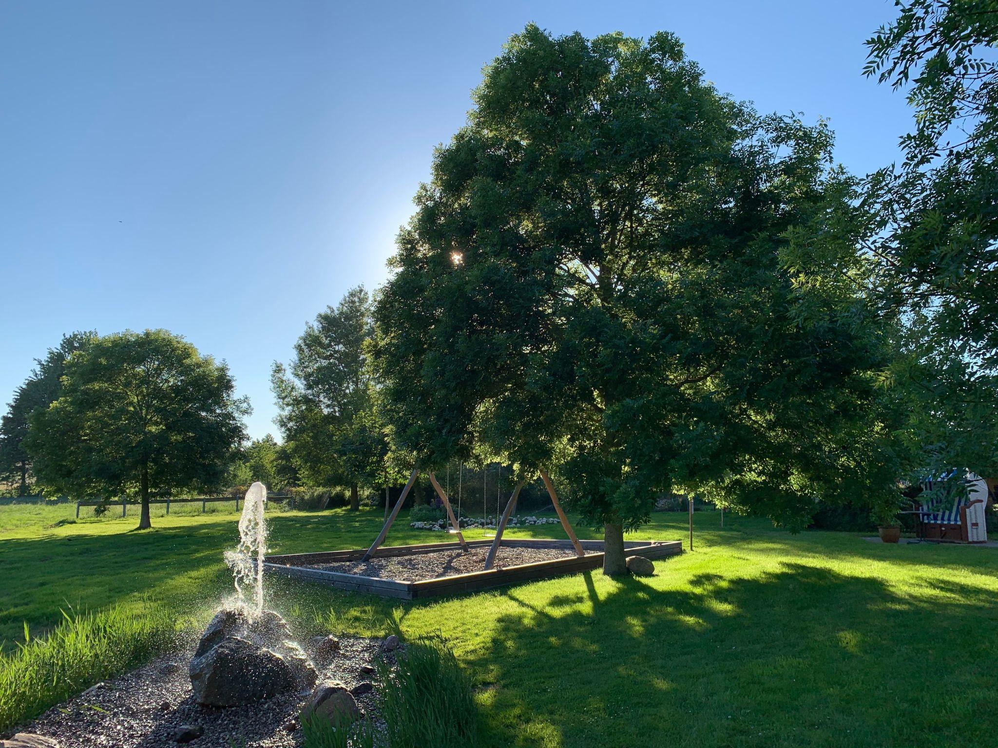 Im Garten befinden sich unter anderem Terrassen mit Sitzgruppen, Strandkörbe, Sonnenschirme und Liegestühle. Vom Garten aus genießen Sie einen wunderschönen Blick in die Natur. Außerdem gibt es einen Grillplatz im Garten.