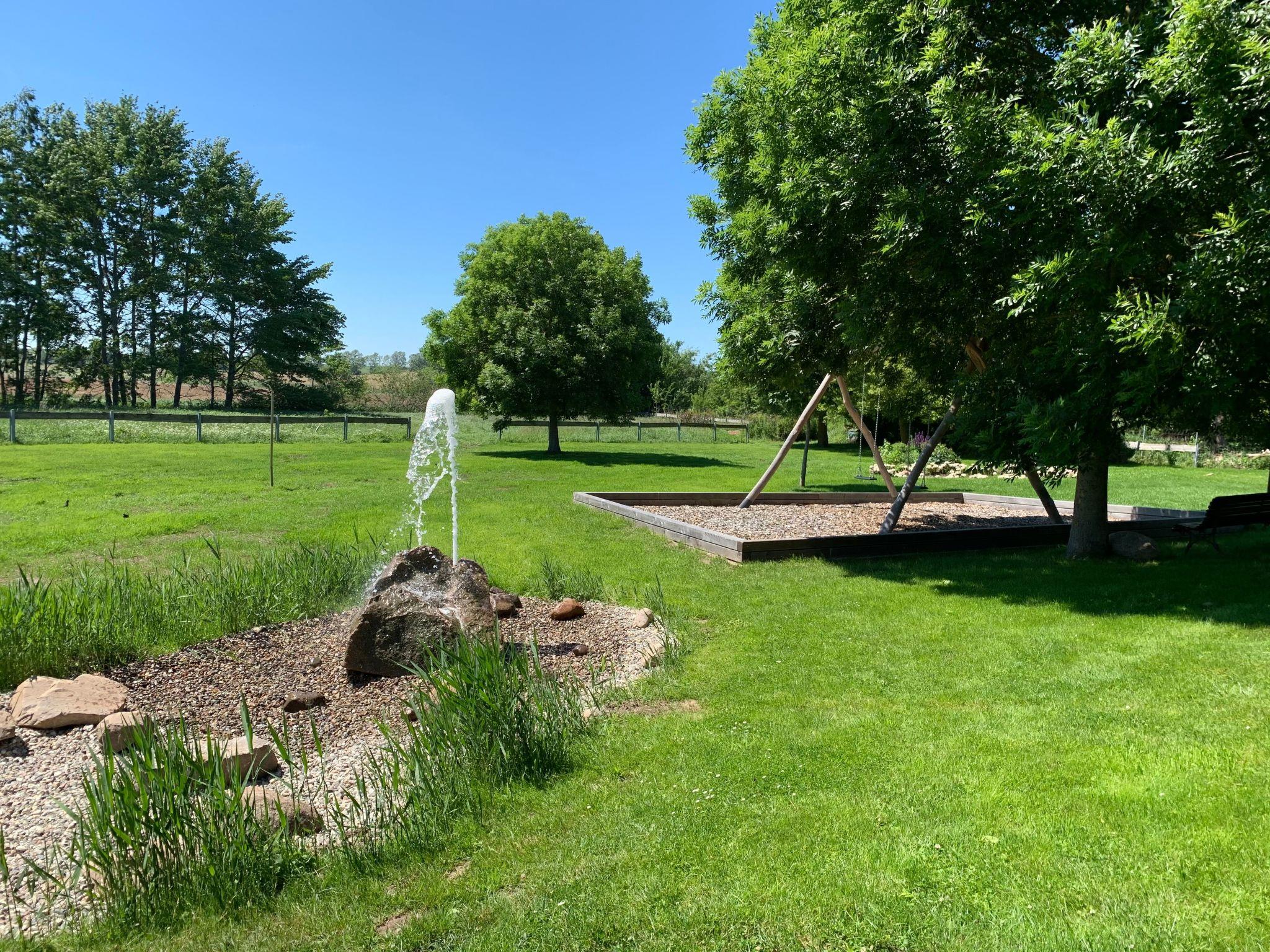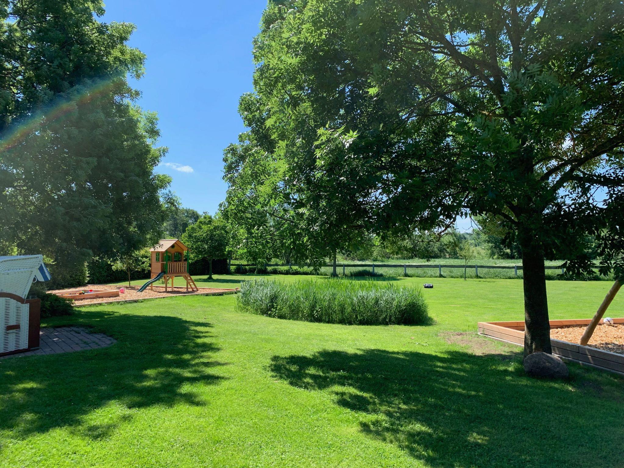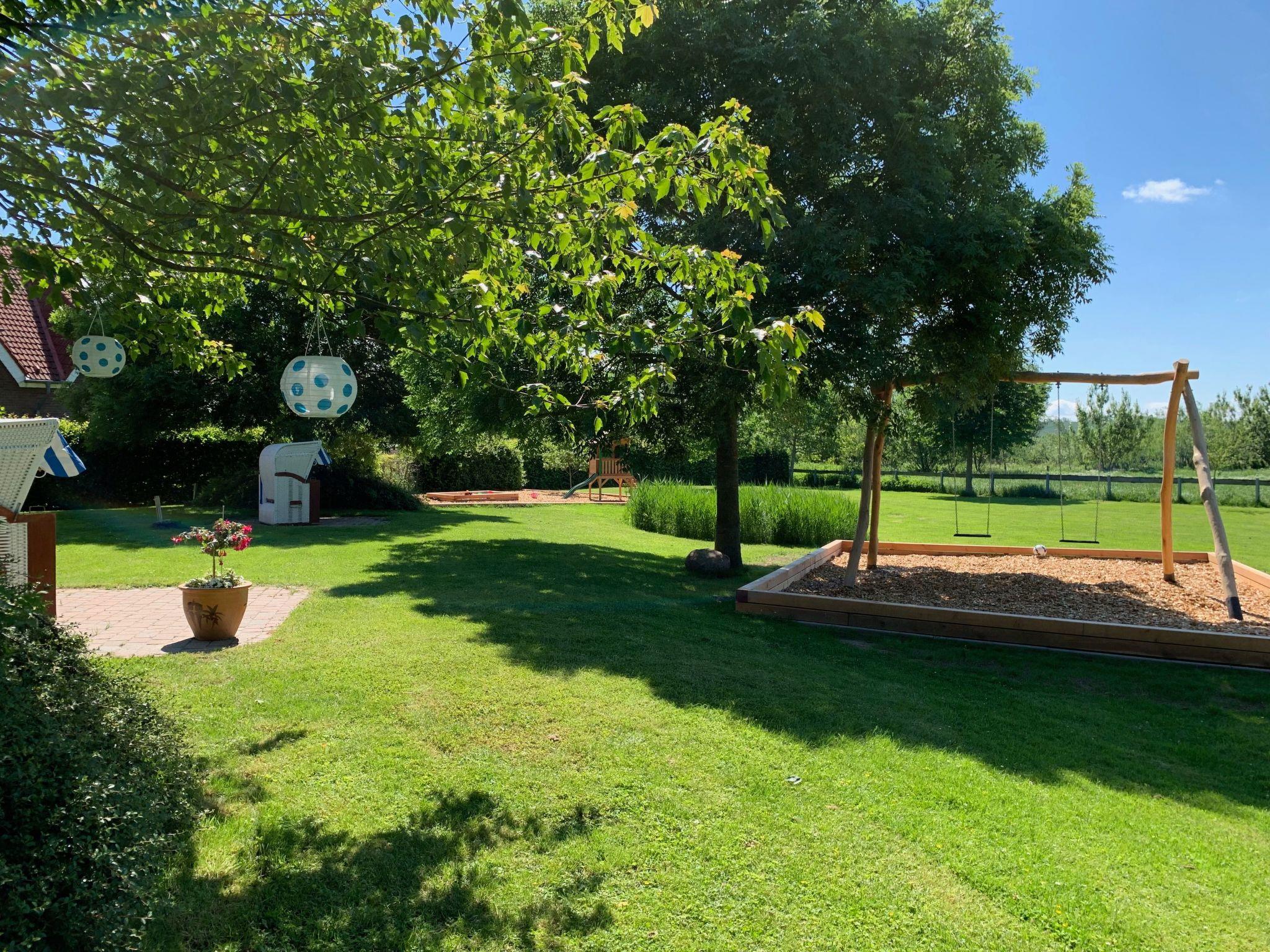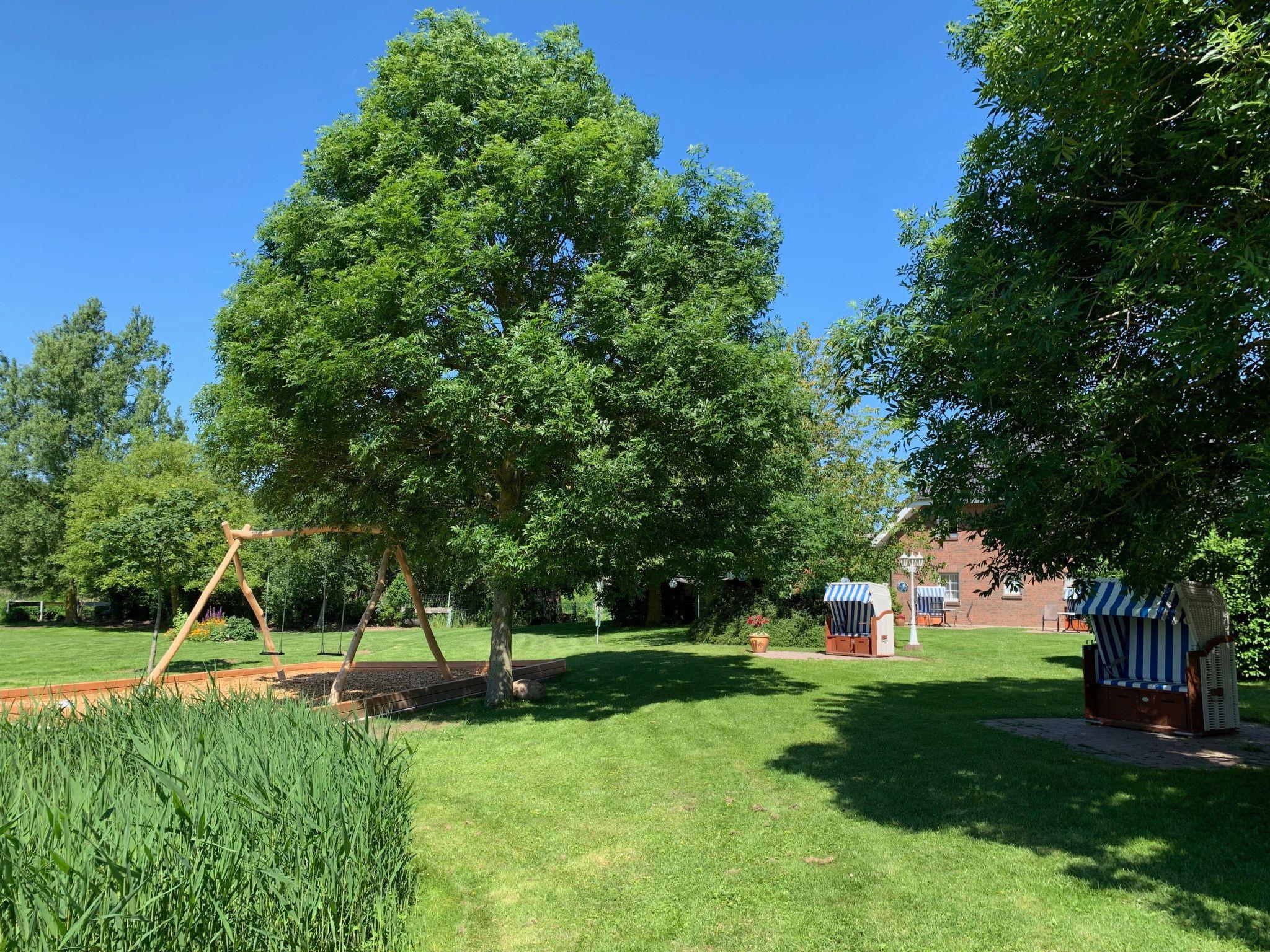 Die große Gartenanlage bietet viel Platz zum Erholen, Entspannen und Spielen.