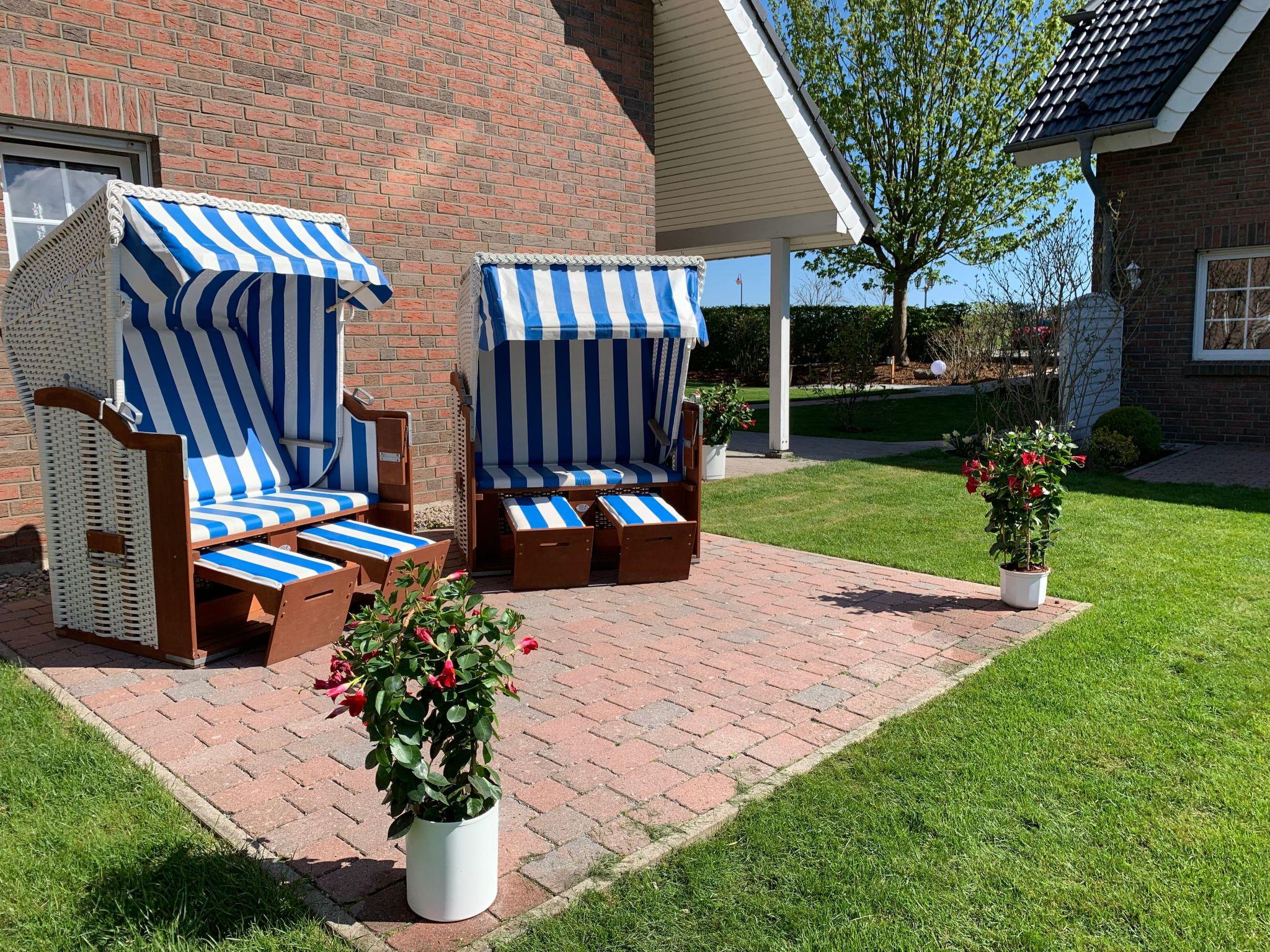 Im Garten befinden sich unter anderem Terrassen mit Sitzgruppen, Strandkörbe, Sonnenschirme und Liegestühle. Vom Garten aus genießen Sie einen wunderschönen Blick in die Natur. Außerdem gibt es einen Grillplatz im Garten.