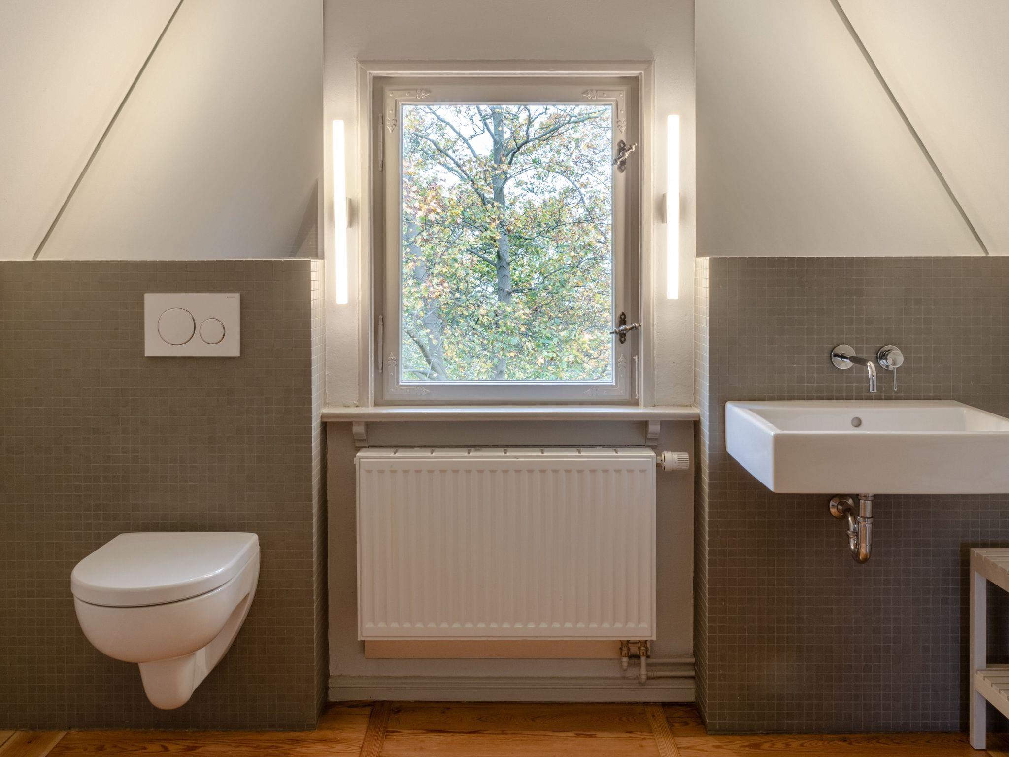 Das Haus wurde 2016/19 sensibel rekonstruiert, mit dem Anspruch, den historischen Villencharakter dem Baudenkmal wiederzugeben. In den oberen Geschossen befinden sich fünf Doppelschlafzimmer, drei mit Terrasse nach Süden, Osten und Westen. Es gibt vier Duschbäder. Verbunden sind die Schlafräume, die sich über zwei Etagen erstrecken durch das zentrale Treppenhaus, dessen Wände ganz mit Holz verkleidet sind. Im Erdgeschoss befinden sich, neben dem Haupteingang und der Garderobe die gemeinsam genutzten Räume. Mit den historischen Wandverkleidungen aus Pitchpineholz, zeigt das kleinere Wohnzimmer, Fernsehraum und Bibliothek den ganzen Charme der alten Bäderarchitektur. Das große Esszimmer und die Veranda bieten durch einen Erker Ostseeblick nach Nordost und Zugang in den vorderen Bereich des Gartens. Dort steht ein rustikaler Saunawagen der gerne genutzt werden kann. Neben dem Saunawagen steht ein kleines Nebengebäude, indem die Waschmaschine und eine weiter Toilette untergebracht ist.
