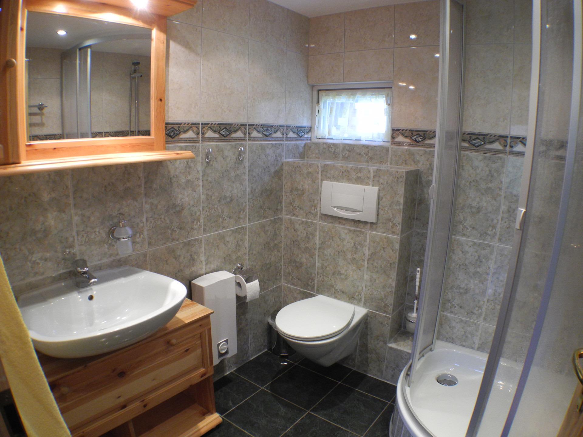 Das Duschbad erreichen Sie über den Eingangsbereich des Hauses.