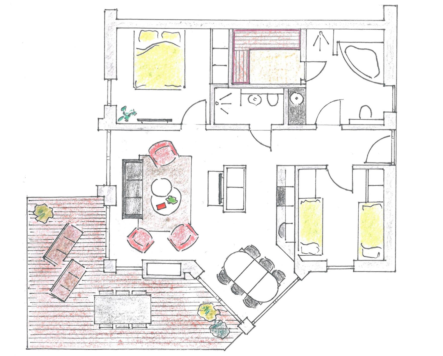 Wir haben unsere Wohnung für Sie liebevoll und gemütlich eingerichtet und hoffen, dass Sie sich hier sehr wohlfühlen werden. Im Sommer können Sie auf der Terrasse herrlich in Ruhe frühstücken und danach gleich zum Strand gehen, um Sonne, Sand und Meer zu genießen. Das Wellnessbad mit der Sauna ist ein Erlebnis im Sommer wie auch im Winter. Von der Sauna unter die Brause oder auch direkt in die Ostsee, danach in den Whirlpool und dann zum Ausklang eine gute Tasse Tee oder ein Glas Rotwein vor dem Kamin. Das ist Urlaub!