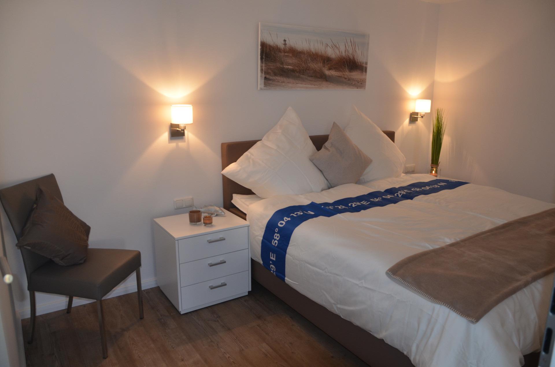 Die zwei Schlafzimmer, eins ist mit einem Doppelbett und das zweite mit zwei Einzelbetten ausgestattet, laden zu erholsamen Nächten ein. Tauchen Sie in Ihrer eigenen Traumwelt ab und genießen den hochwertigen Komfort der Boxspringbetten.