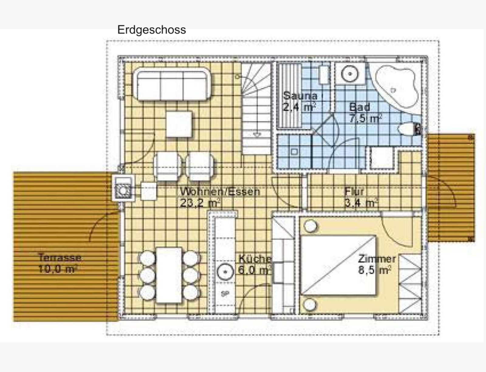 Im Winter und an kühleren Tagen lässt sich am knisternden Modernen Kamin ein lauschiger Abend verbringen. Die elektrische Fußbodenheizung im Untergeschoss sorgt ebenfalls für angenehme Wärme. In der gemütlichen Sitzecke der Galerie lässt es sich in Ruhe lesen, wenn das Wetter einmal nicht so mitspielt.