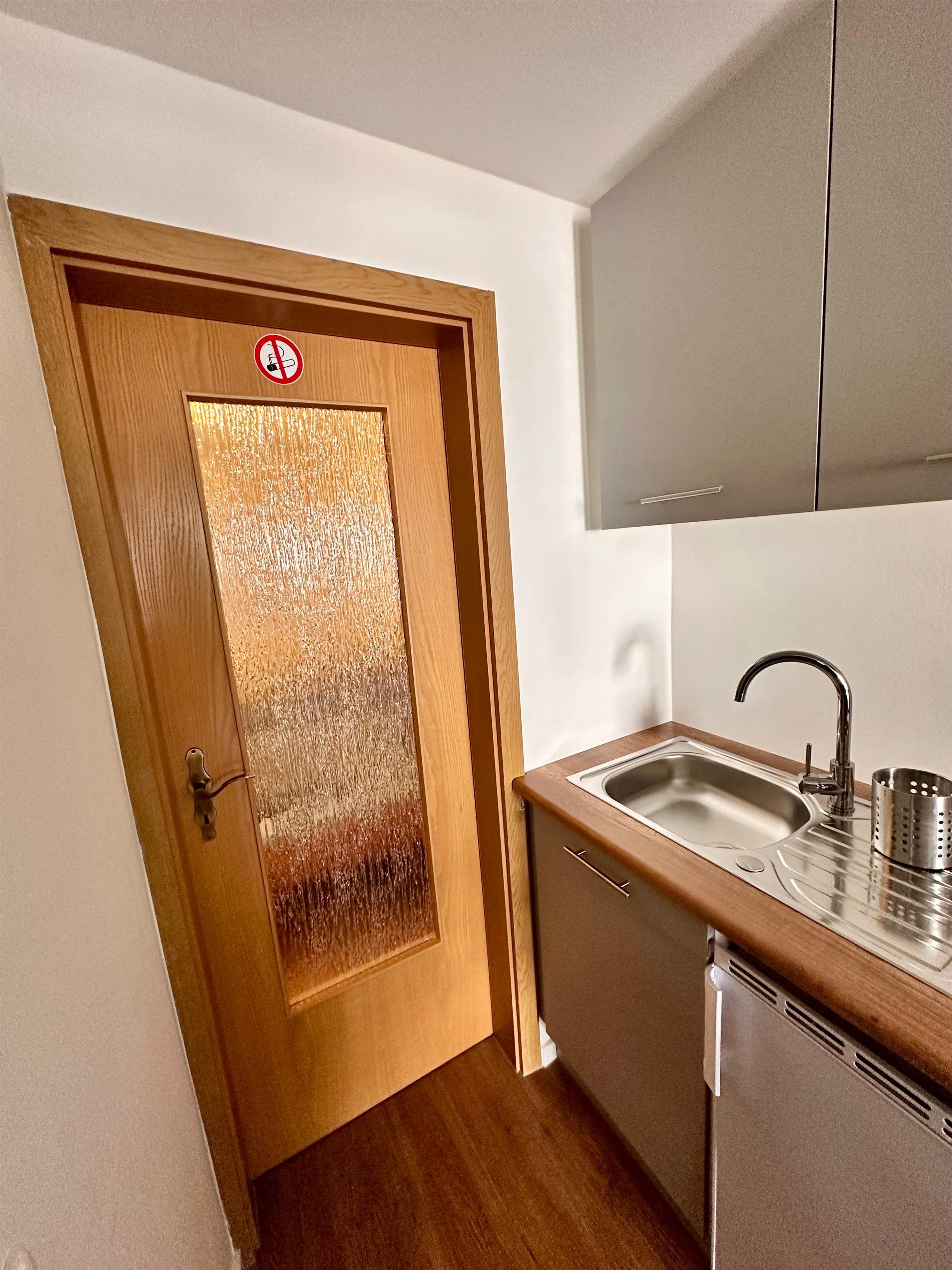 Im Nebenhaus dahinter erwarten sie vier Sparferienwohnungen mit einer Größe von 22qm, Schlafplätze für bis zu 3 Personen und kleiner Terrasse. Hier gilt das Motto: klein aber fein und ist für alle die gedacht, die viel unterwegs sind und fast nur zum Schlafen in die Unterkunft kommen. Eine Sparwohnung, Nr.1 ist mit Einzelbetten und drei, Nr.2, 3 und 4, mit Doppelbett ausgestattet.
