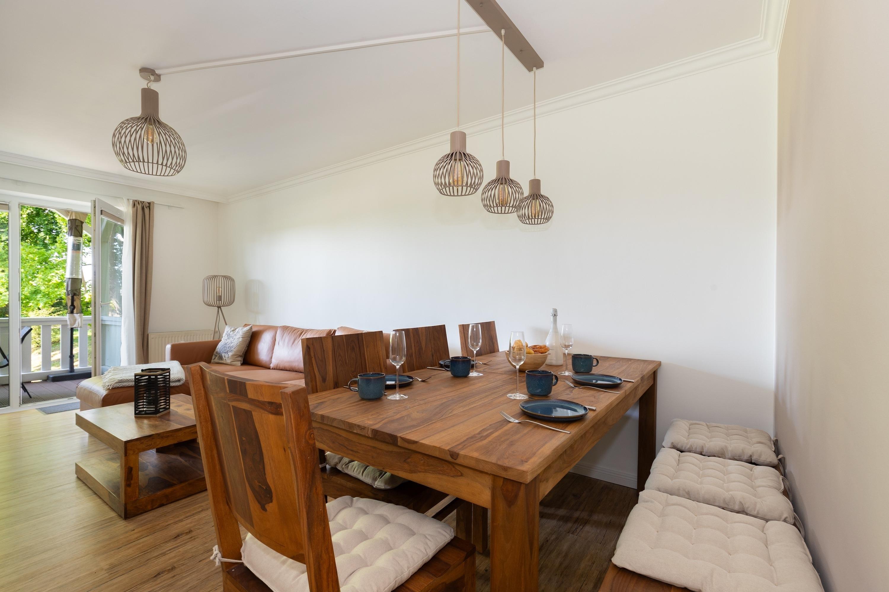 Der Wohn- und Essbereich lädt mit seiner offenen Gestaltung zum Verweilen ein – sei es für gemeinsame Mahlzeiten, einen gemütlichen Filmabend oder entspannte Lesestunden. Die voll ausgestattete Küche bietet alles, was Sie für die Zubereitung Ihrer Lieblingsgerichte brauchen – vom Frühstück bis zum Abendessen.
