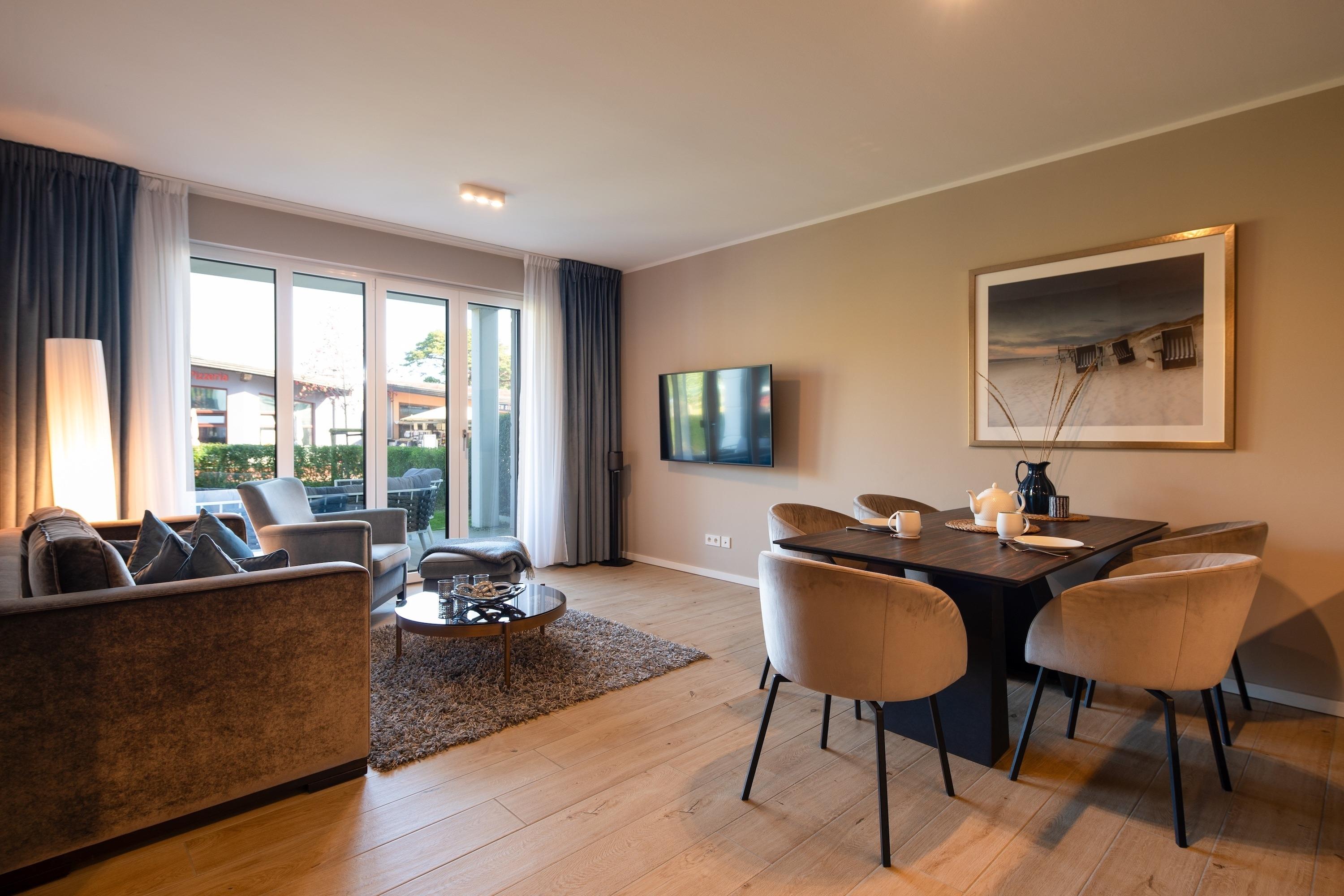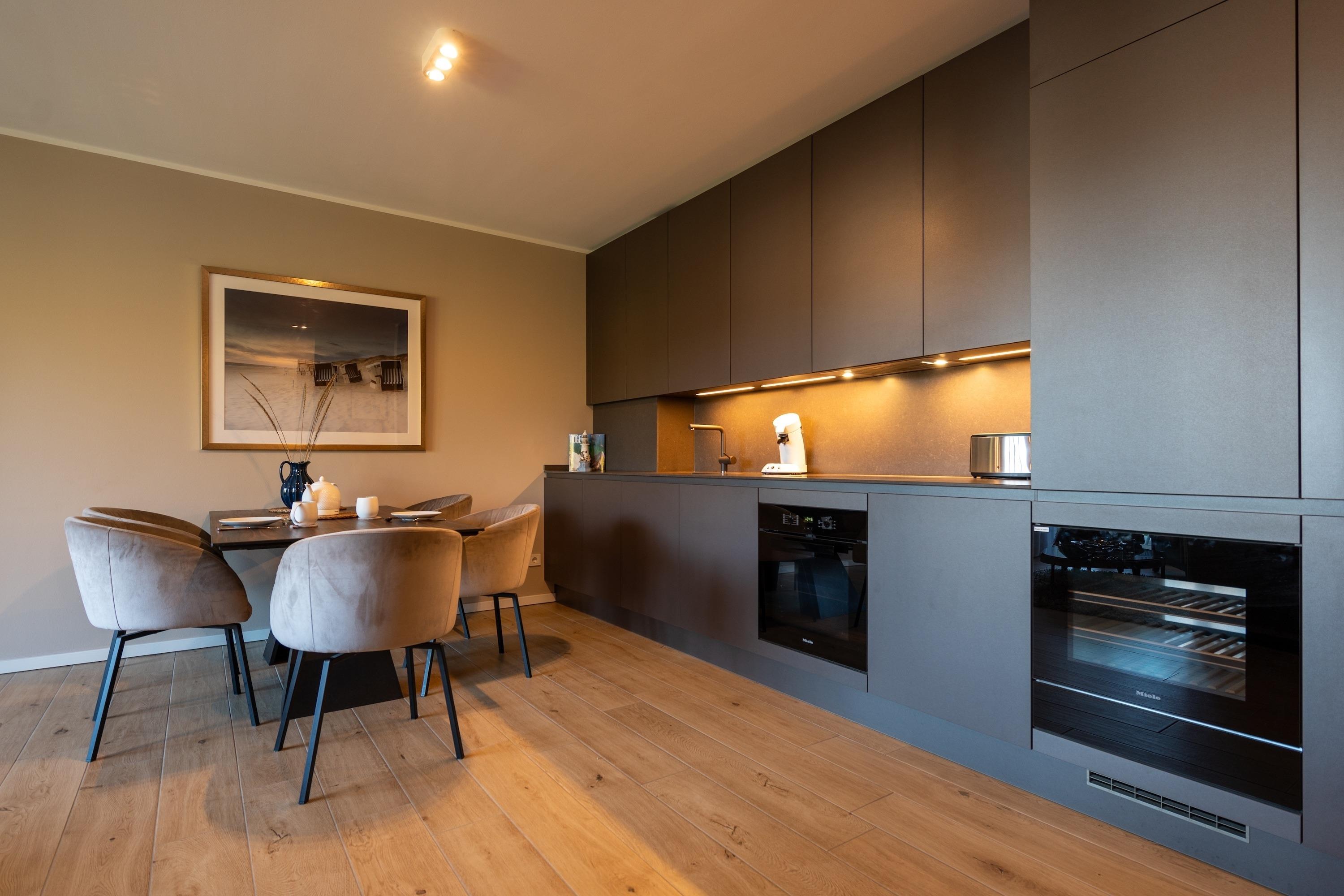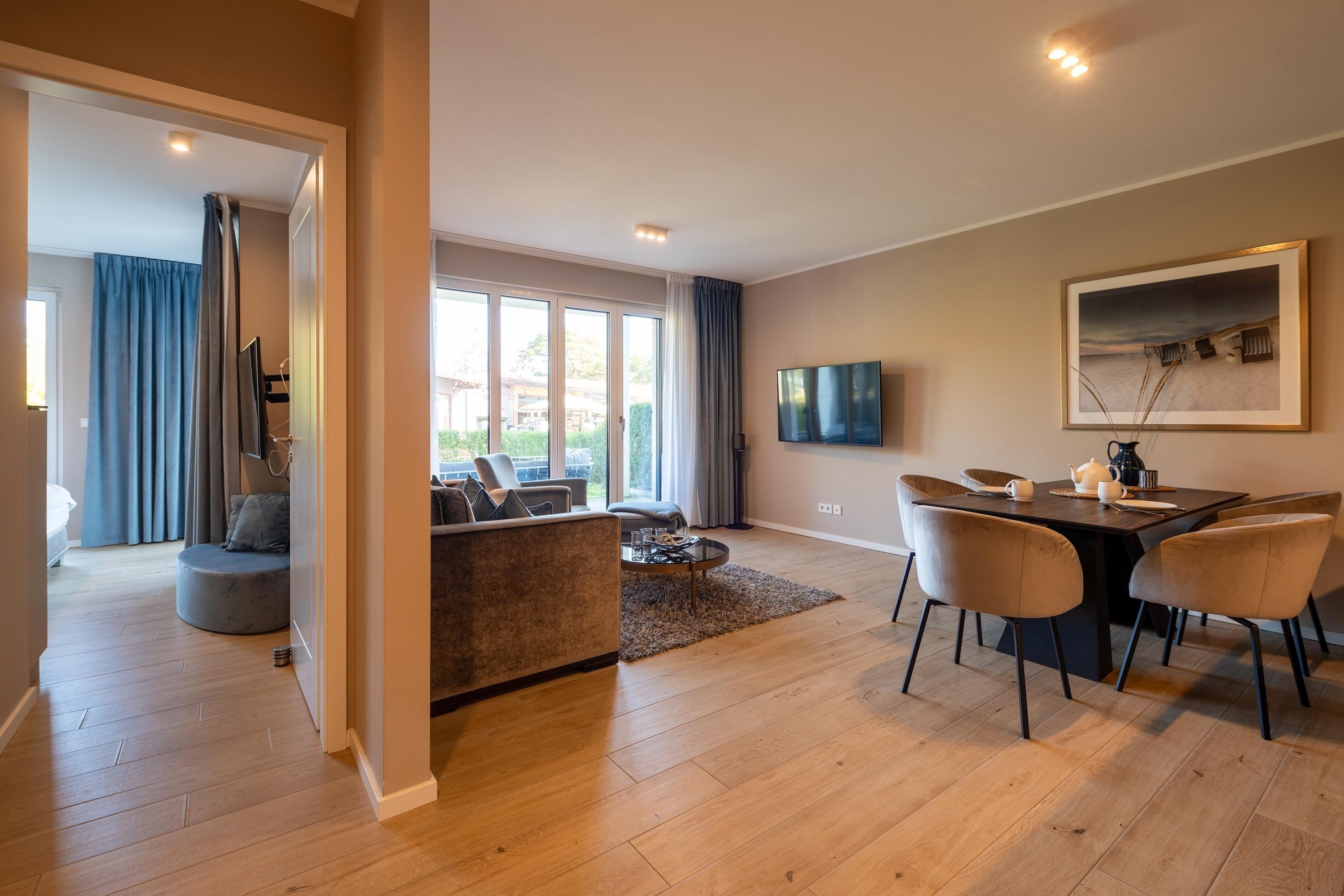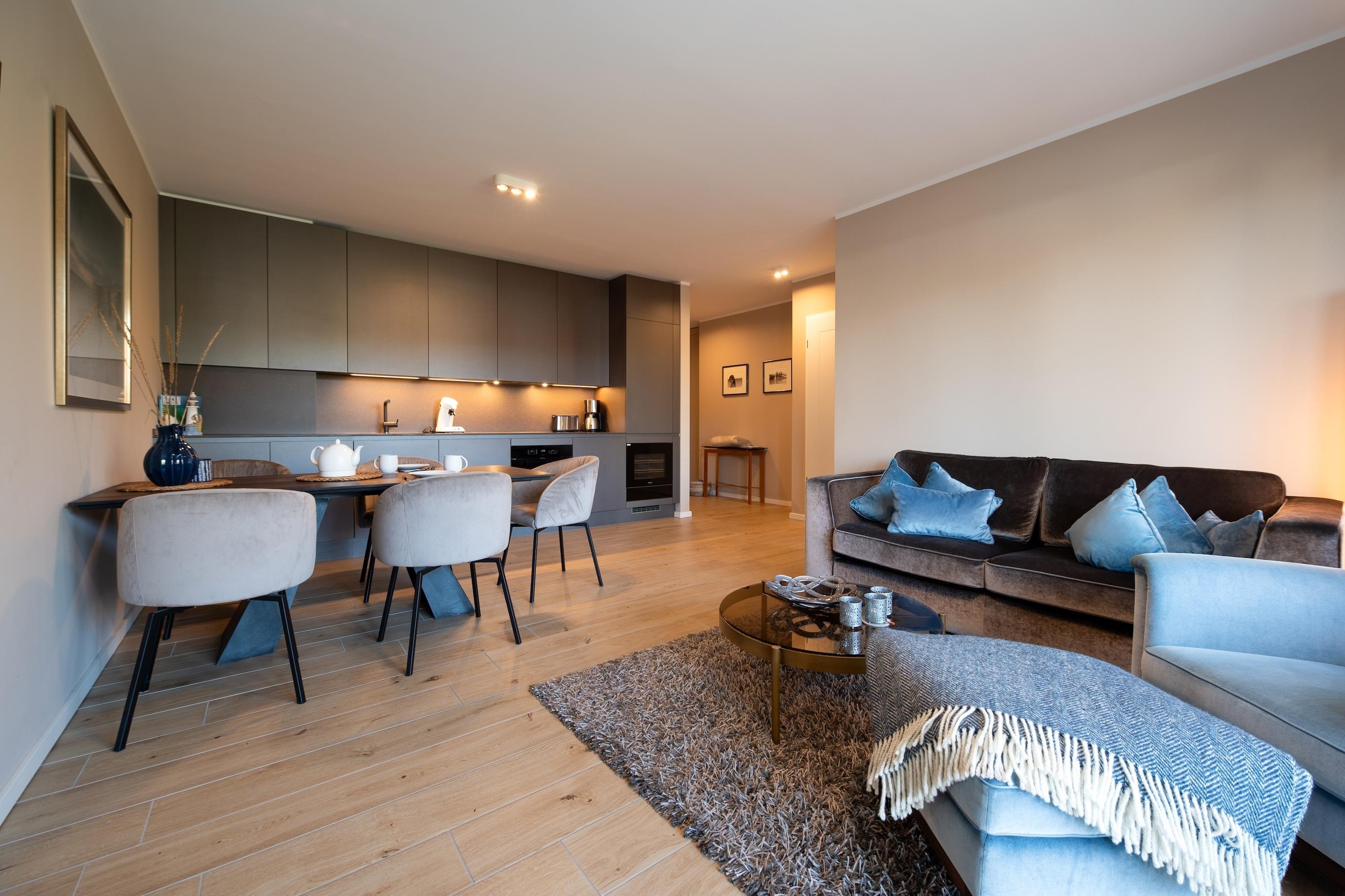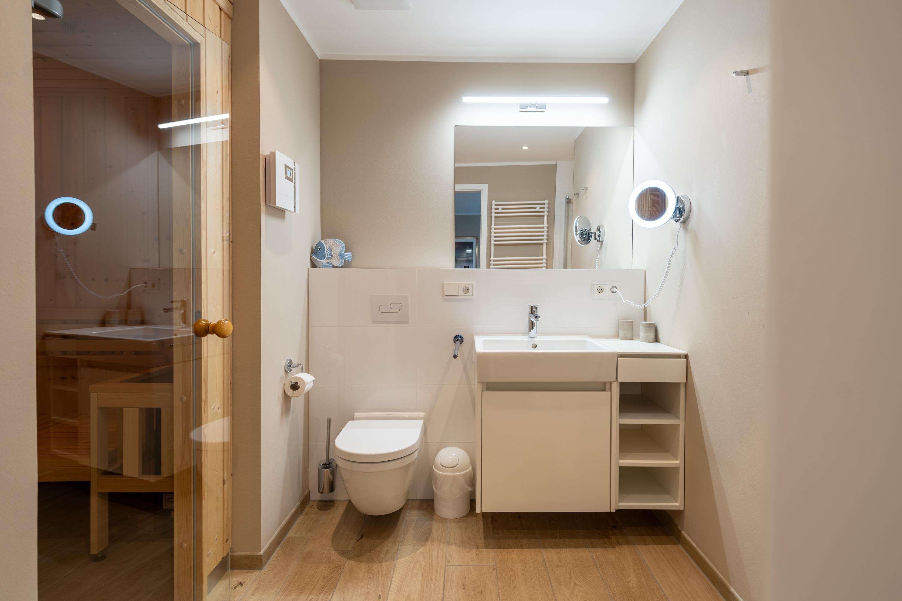 Zur Ausstattung gehören ein eigener Tiefgaragenstellplatz mit E-Ladestation und ein abschließbarer Fahrradkeller. Zudem können Sie während Ihres Aufenthalts kostenlos WLAN/Internet nutzen und sich nach einem erlebnisreichen Tag in unserer Sauna entspannen. Zudem stehen Ihnen in der Anlage Waschmaschinen und Trockner zur Verfügung, damit Sie auch während Ihres Urlaubs bequem Ihre Wäsche erledigen können.