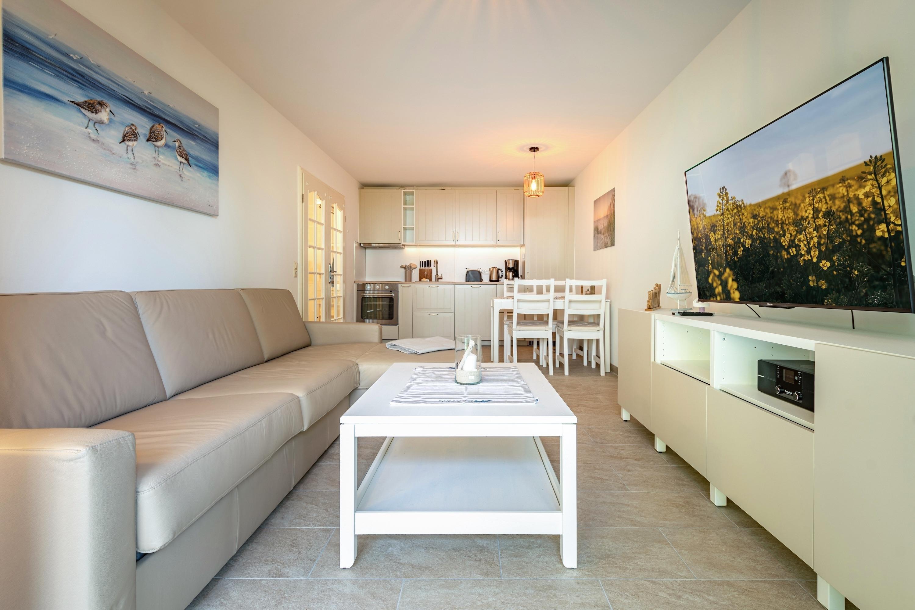 Willkommen in der charmanten Ferienwohnung Strandliebe in Baabe! Auf 48 m² bietet diese gemütliche Unterkunft Platz für bis zu 4 Personen und eignet sich perfekt für Familien und Radfahrer.