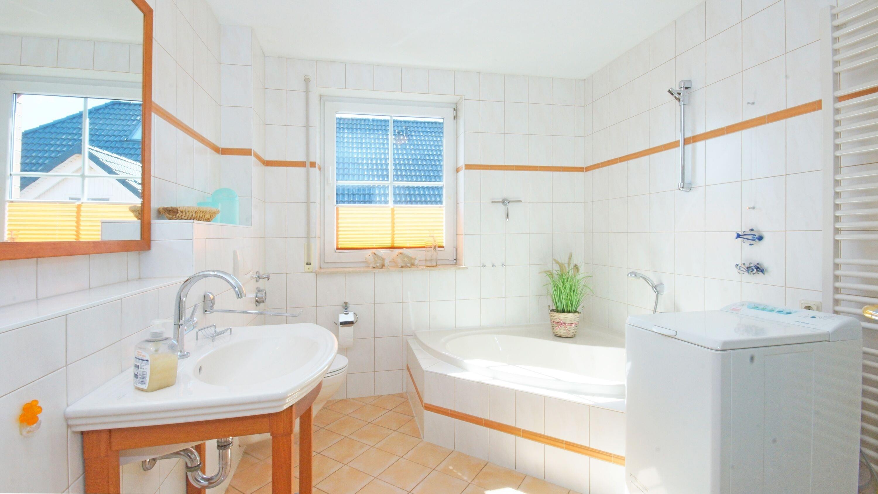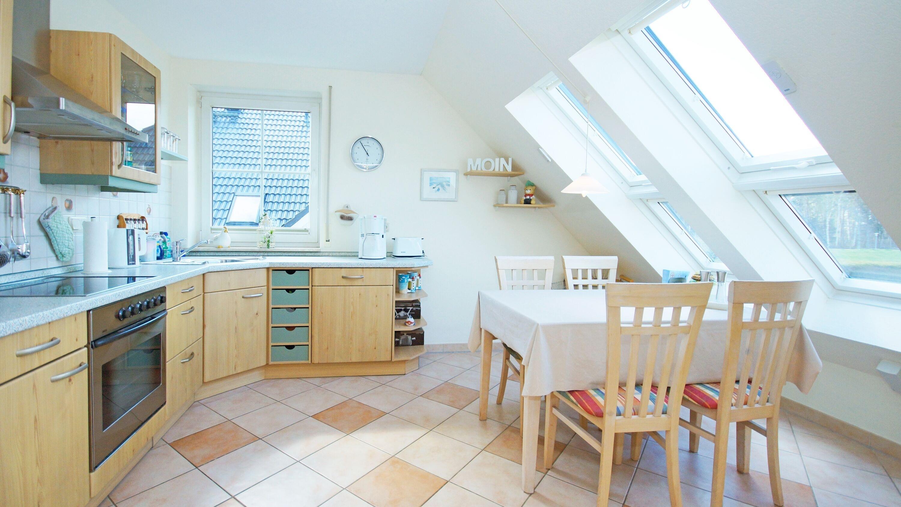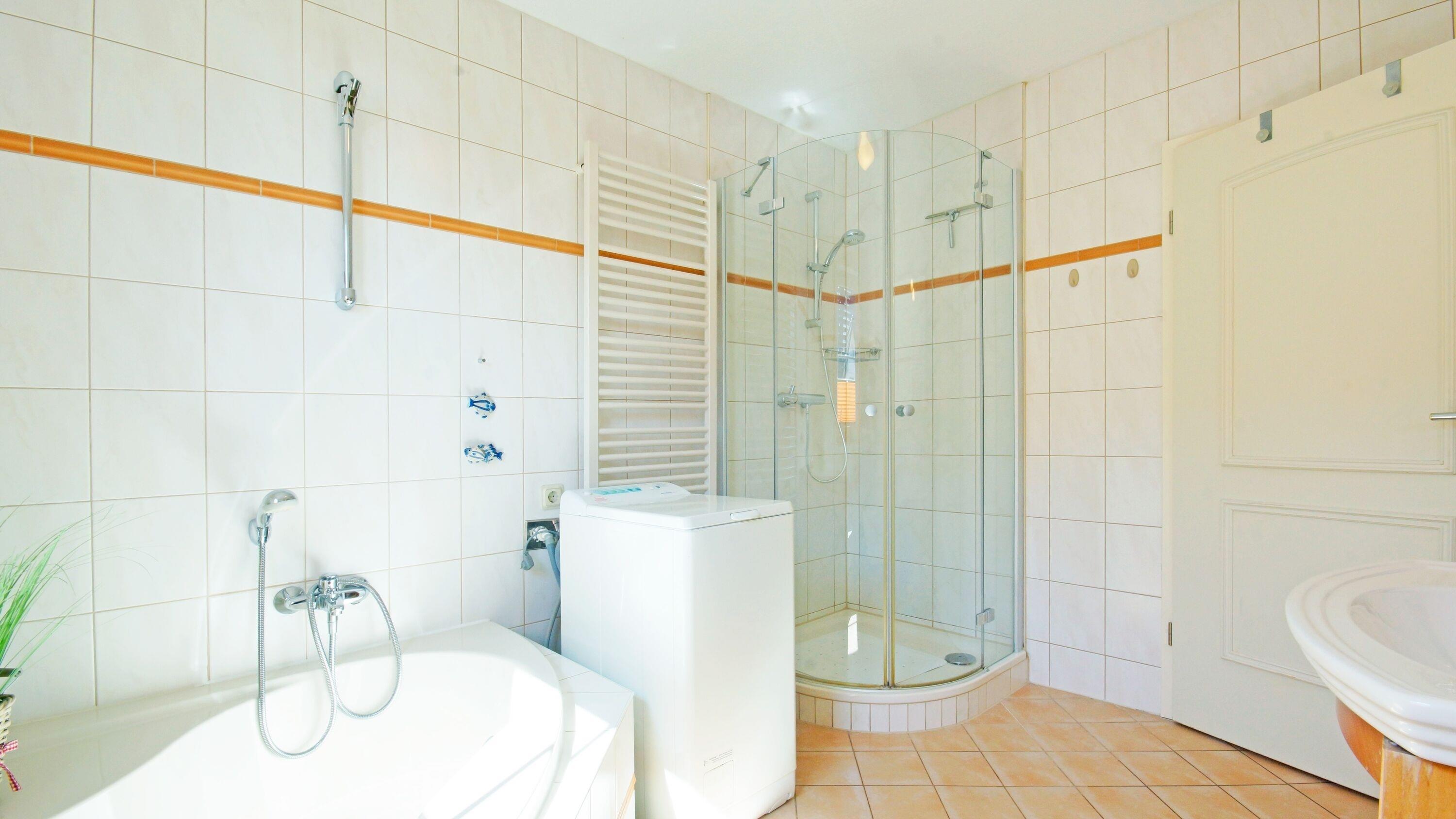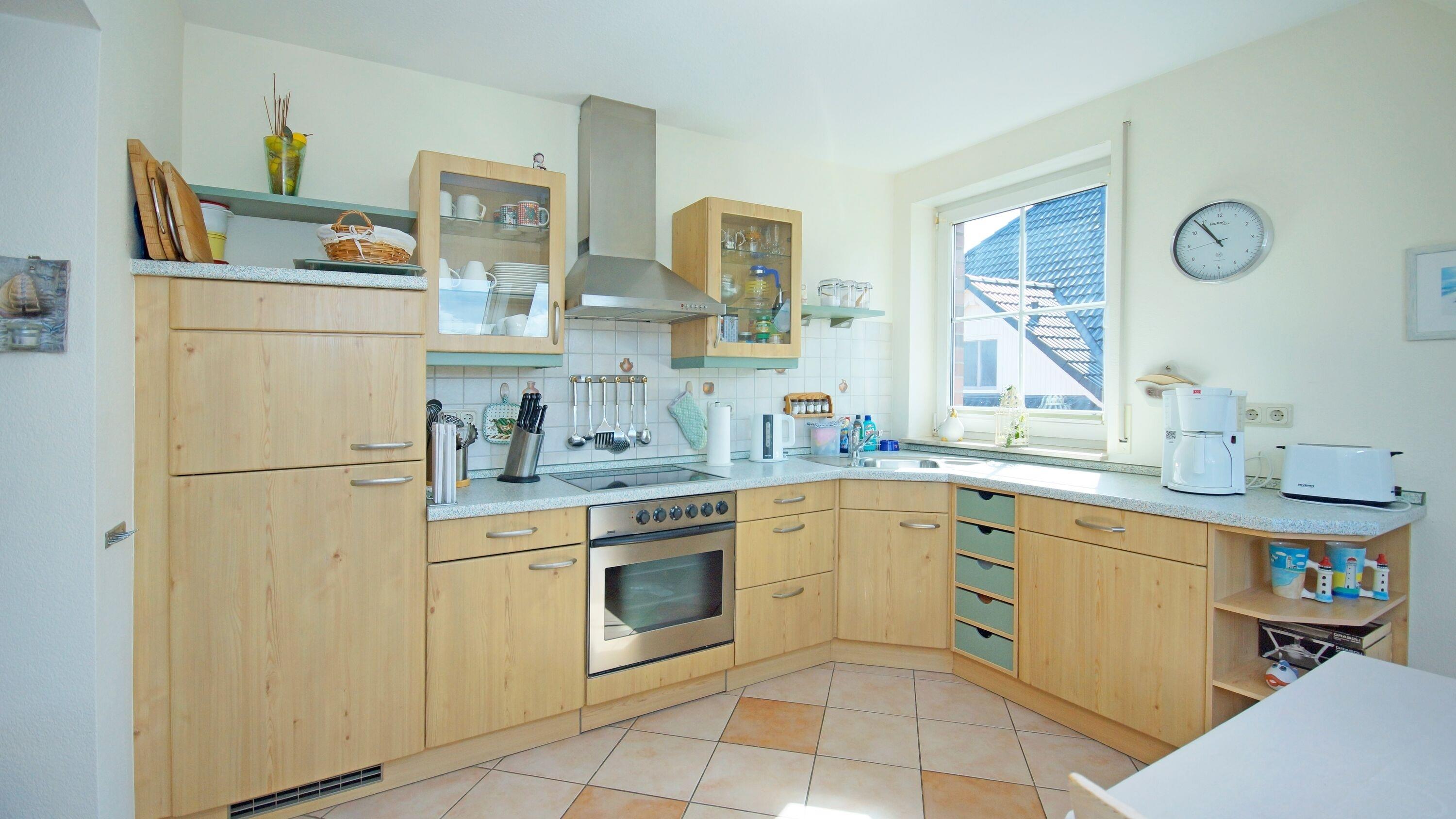 Die Küche ist mit Kaffeemaschine, Geschirrspüler, Kühl- und Gefrierkombination ausgestattet. Im Badezimmer befindet sich eine Waschmaschine.