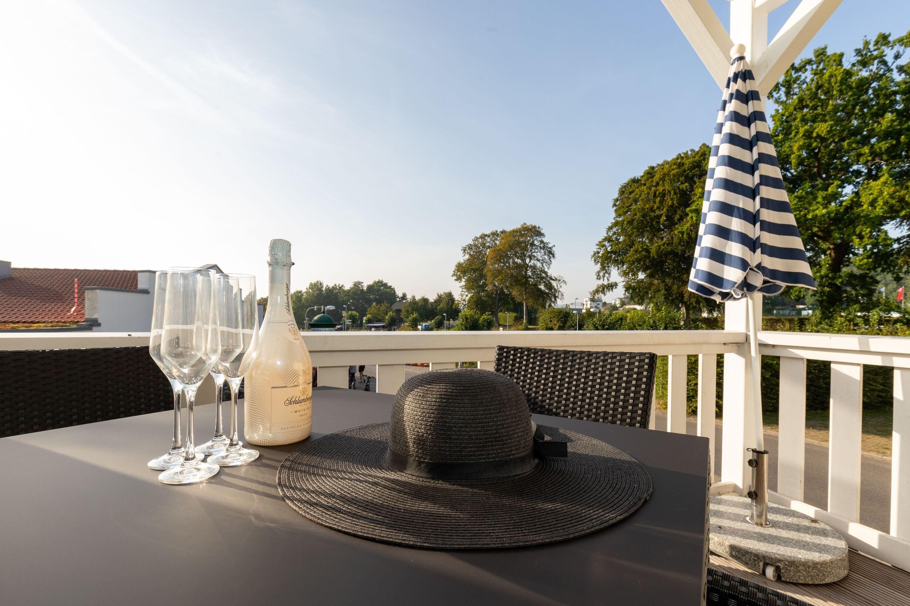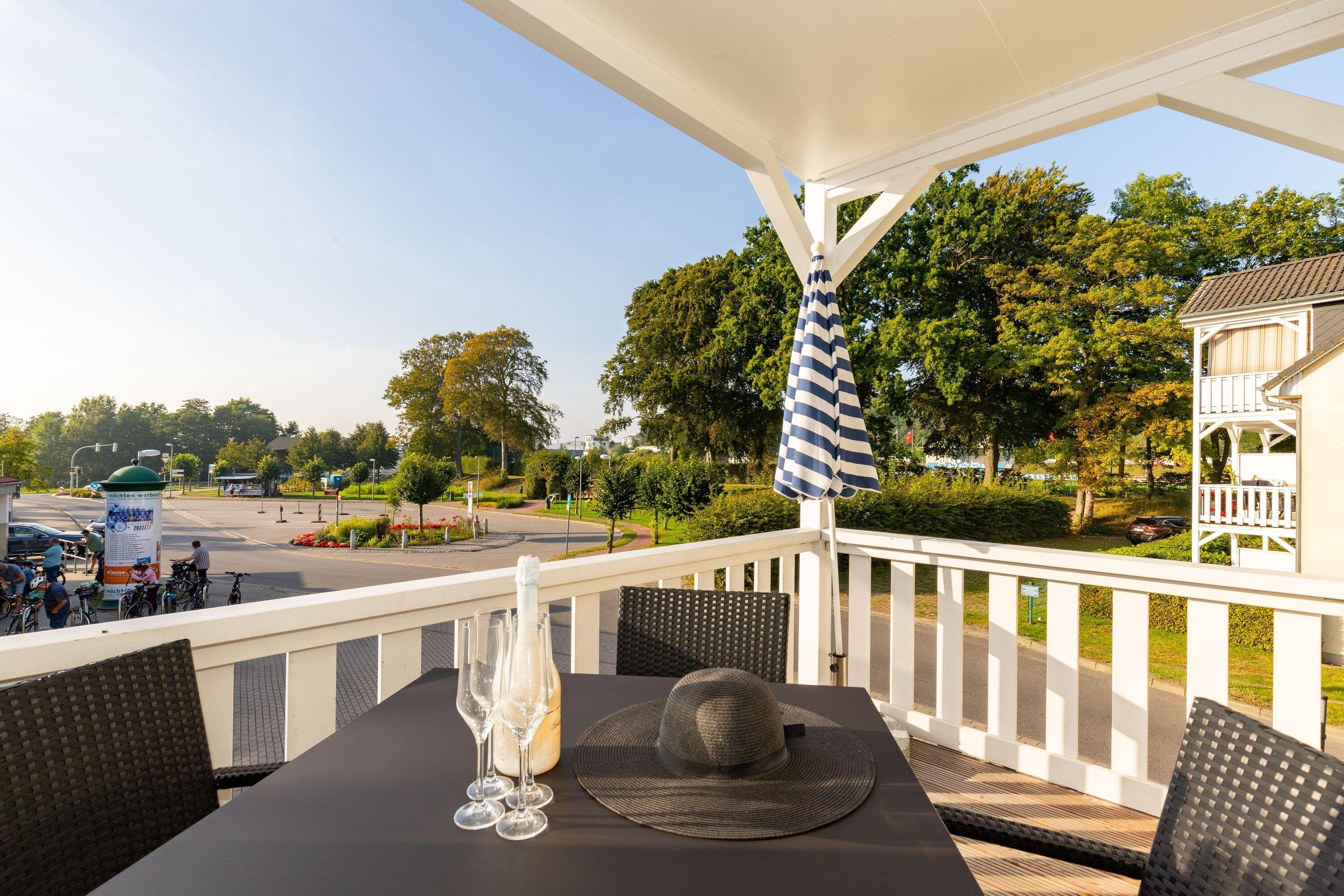 Auf dem Balkon kann man relaxen und die Ostseeluft genießen.