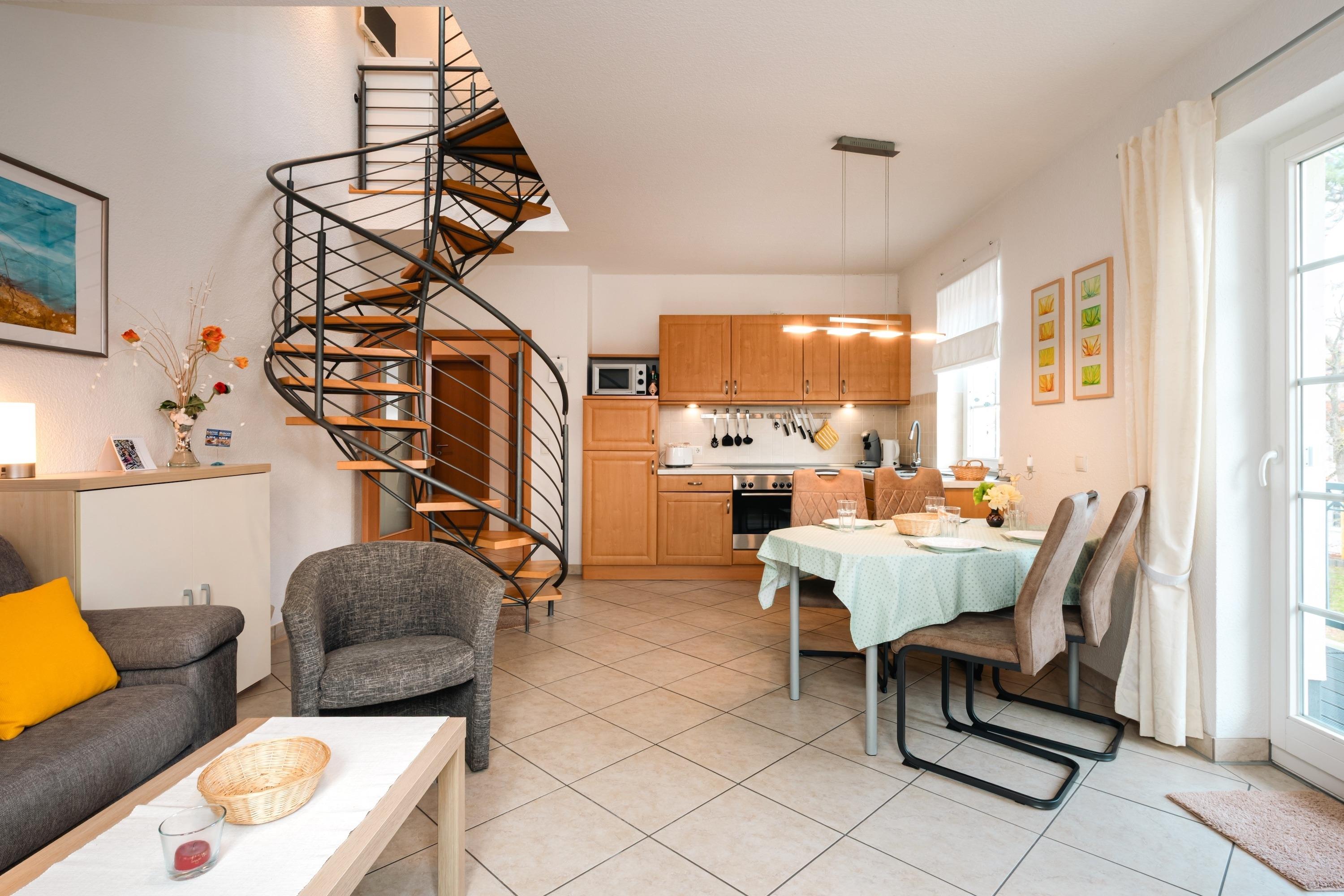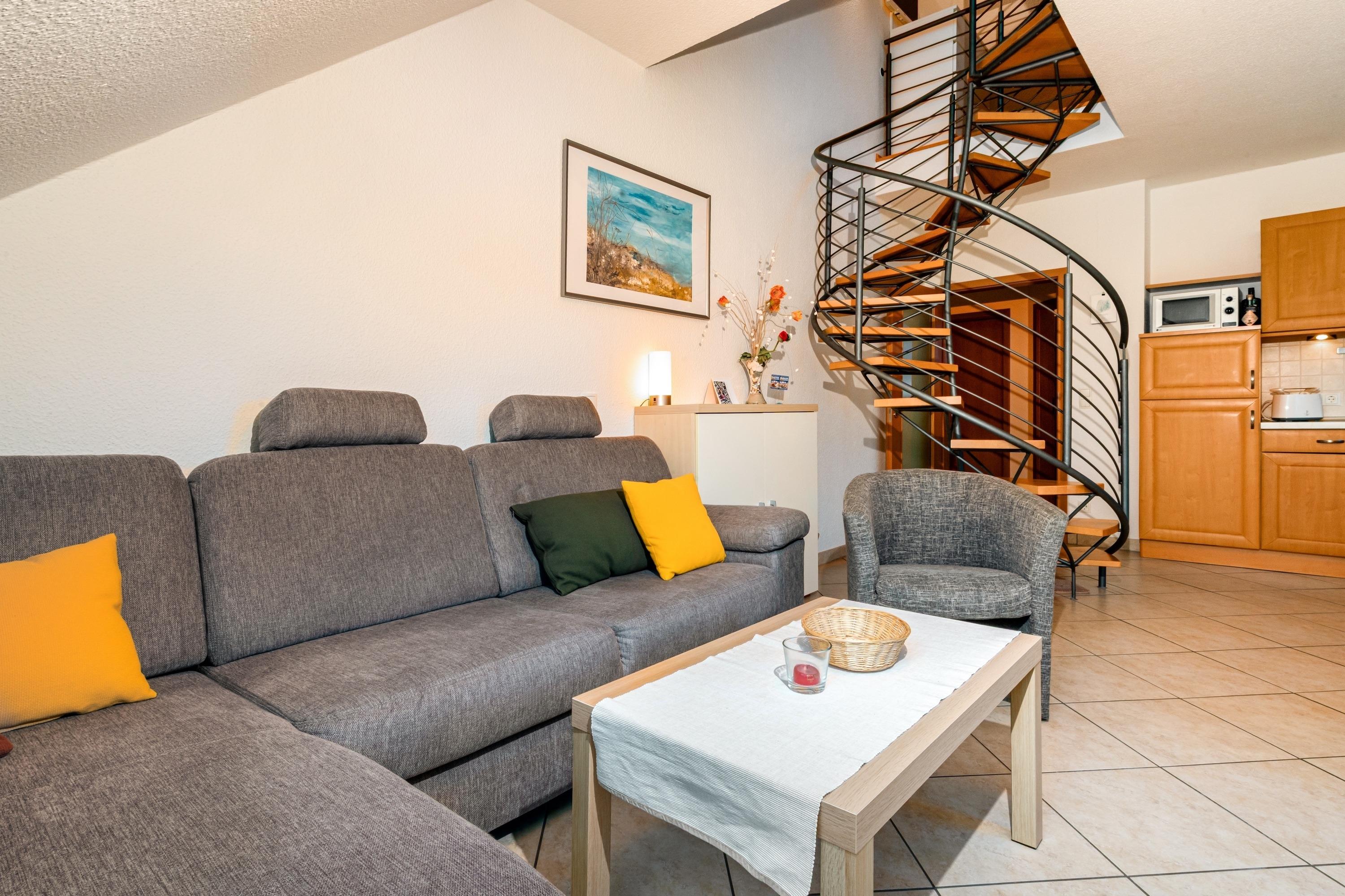 Ein gemütliches Schlafzimmer, ein modernes Badezimmer, sowie eine durchdachte Raumaufteilung schaffen das perfekte Gleichgewicht zwischen Komfort und Funktionalität. Für Ihre Mobilität ist bestens gesorgt: Ein eigener Parkplatz und eine Fahrradunterstellmöglichkeit stehen Ihnen kostenfrei zur Verfügung. Natürlich surfen Sie auch im Urlaub mit kostenlosem WLAN ganz entspannt im Netz.