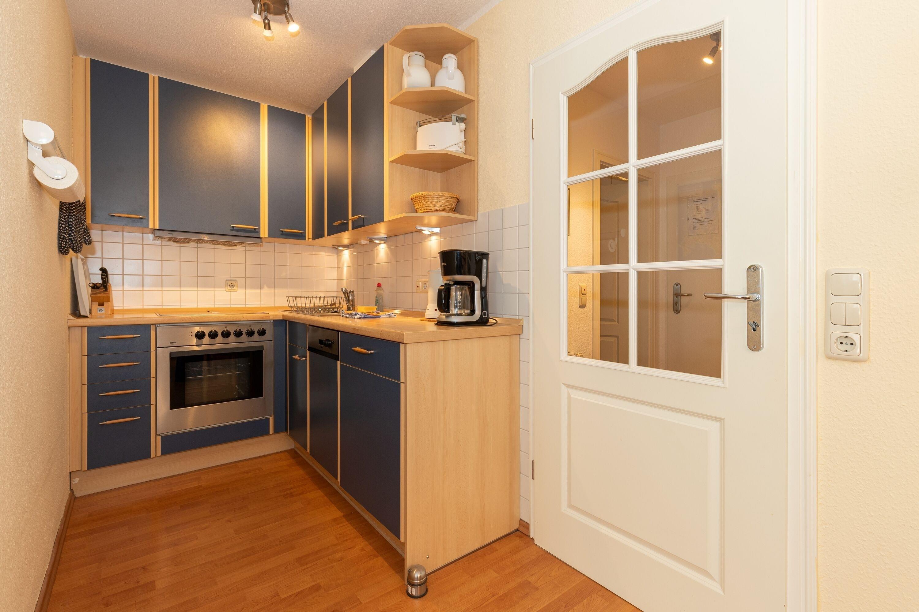 Für Ihre Selbstversorgung steht Ihnen eine gut ausgestattete Küche mit Backofen, Geschirrspülmaschine, Wasserkocher und Filterkaffeemaschine zur Verfügung. Ein Tiefgaragenstellplatz gehört ebenfalls zur Unterkunft; die maximale Einfahrtshöhe beträgt 1,95 m. Fahrräder können sicher im abschließbaren Fahrradraum untergebracht werden.