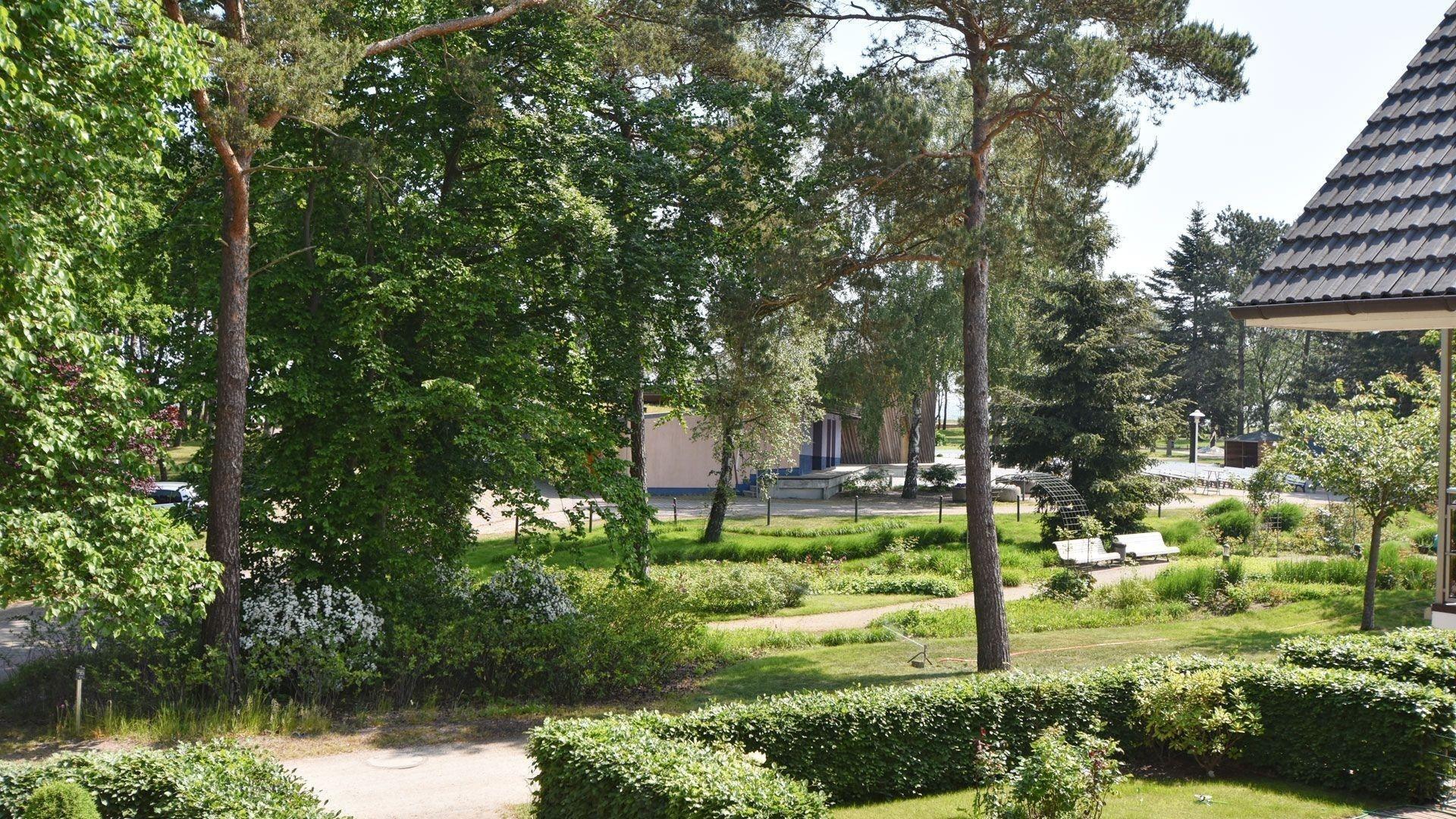 Vom Balkon haben Sie einen Blick auf den Kurpark