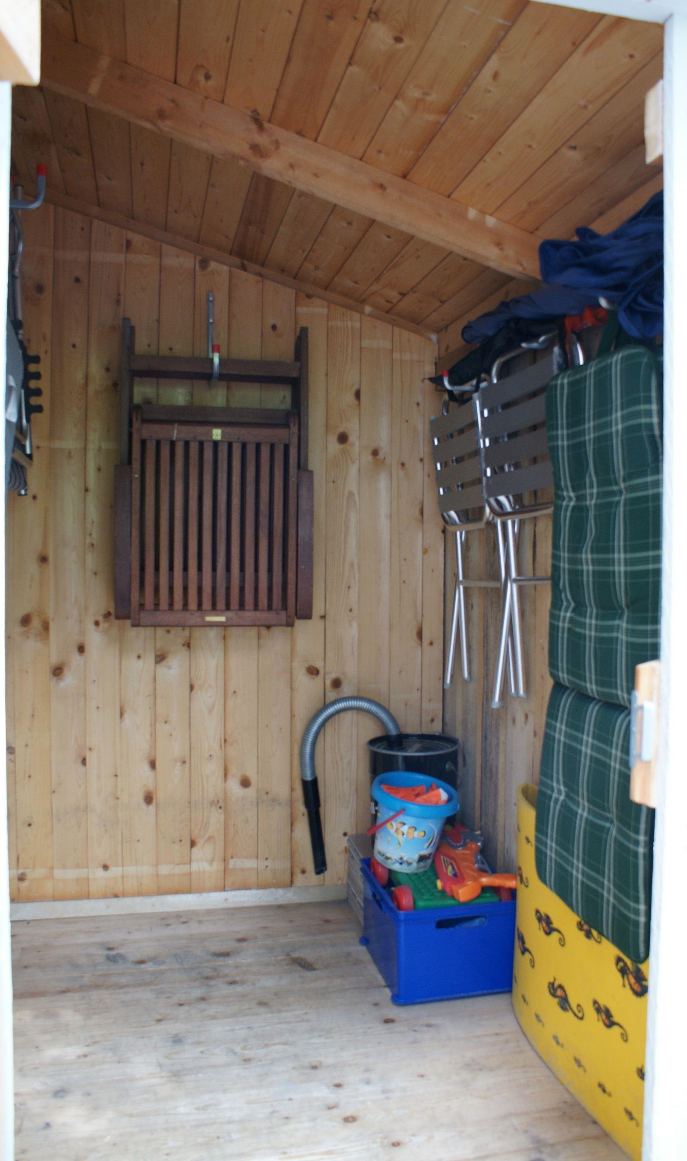 Von der großen Terrasse - auf der ebenfalls ein Strandkorb steht - besteht ein Zugang zum Abstellraum für Fahrräder.
