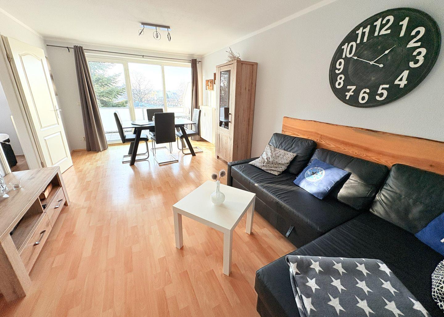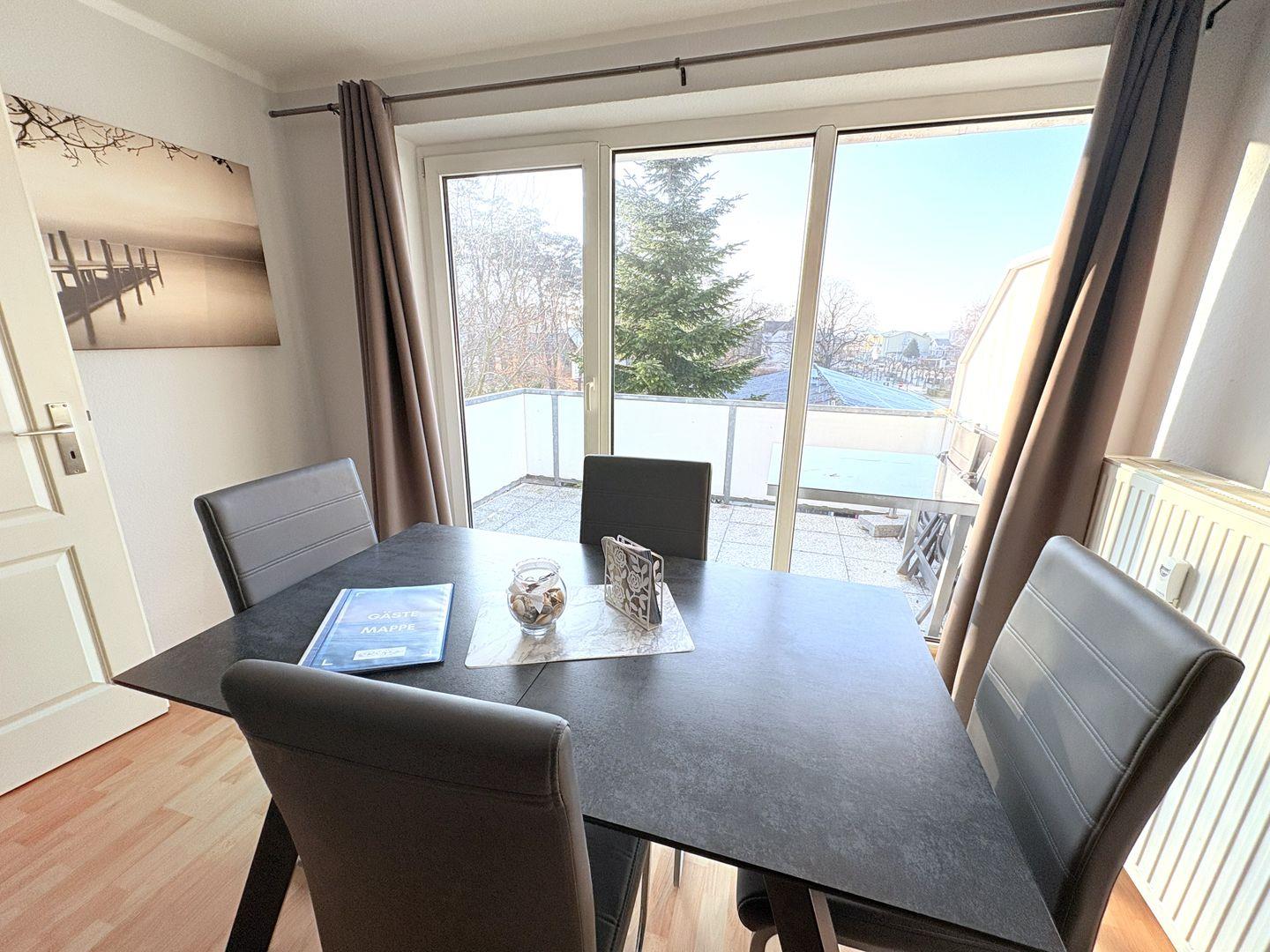 Moderne Ferienwohnung in Baabe mit Seeblick, Balkon, WLAN und eigenem Strandkorb – ideal für einen erholsamen Urlaub zu zweit.