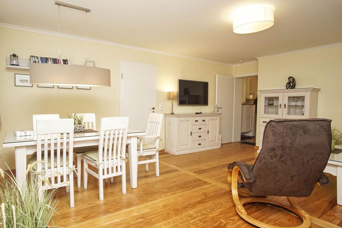 WOHNEN // Wohnraum mit Essbereich, bequemer Couch mit Schlaffunktion, Relax-Fernseh-Sessel, Flachbild-TV ++