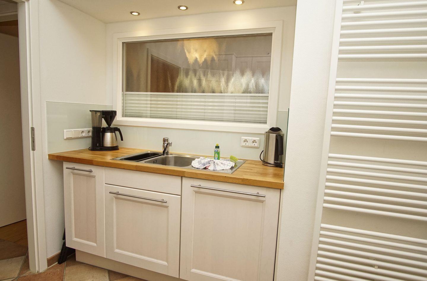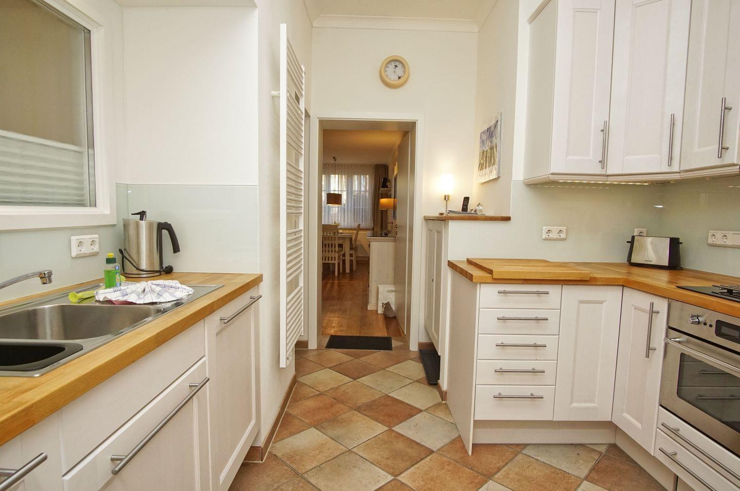 KÜCHE // separate Küche, Induktionsfeld, Spülmaschine, Kühlschrank mit Gefrierfach, Mikrowelle, Kaffeemaschine, Toaster, Wasserkocher, reichlich Besteck sowie Geschirr und diverse Küchenutensilien ++