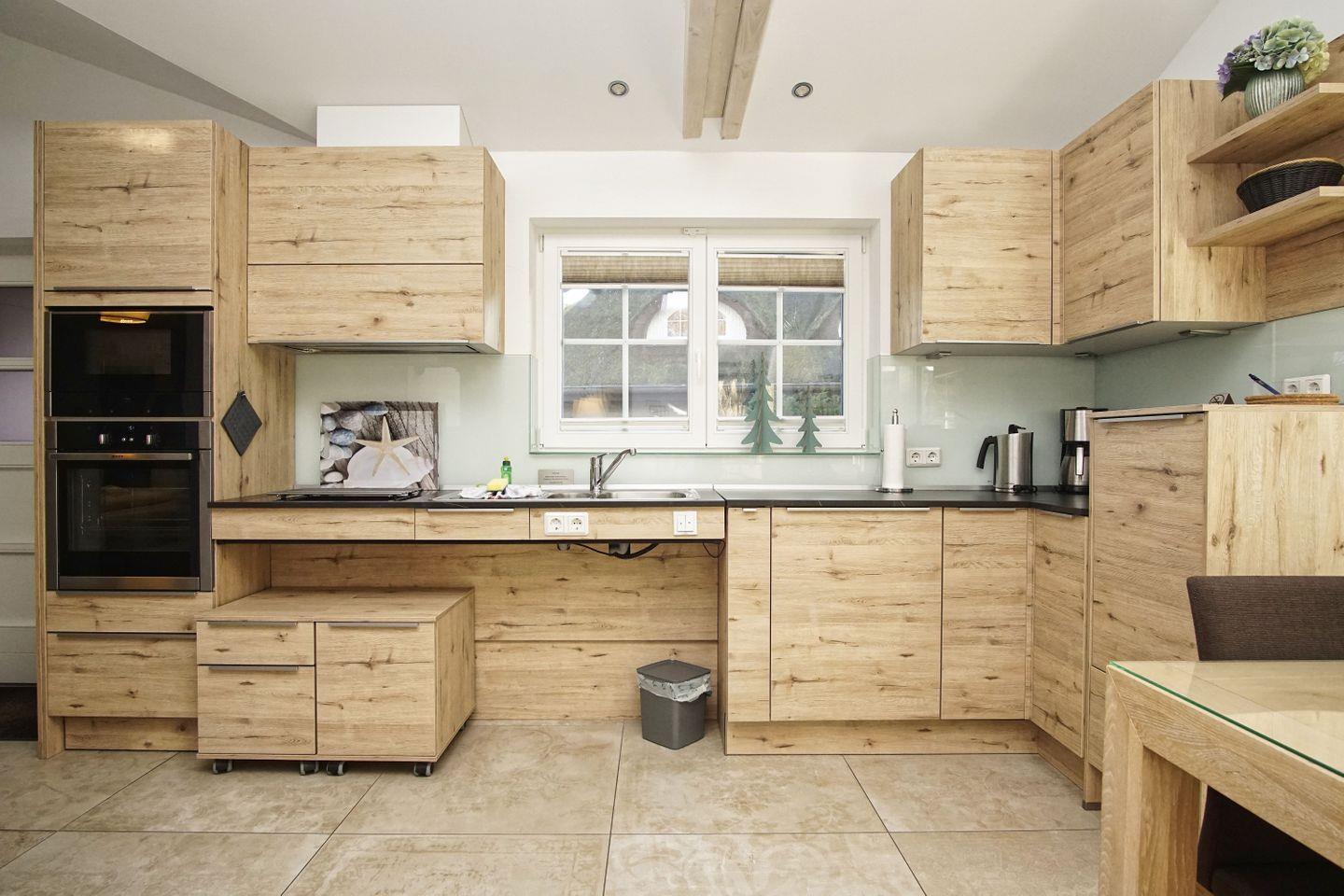 KÜCHE // offene Küche zum Wohnzimmer, Induktionsfeld, Spülmaschine, Kühlschrank mit Gefrierfach, Mikrowelle, Kaffeemaschine, Toaster, Wasserkocher, reichlich Besteck sowie Geschirr und diverse Küchenutensilien ++