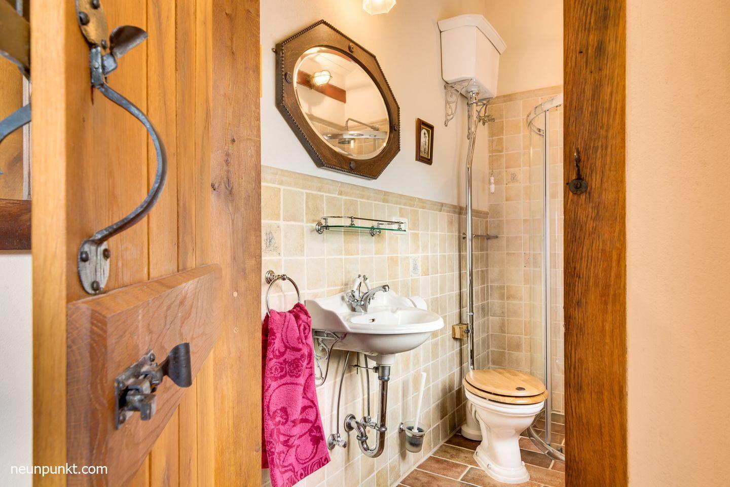 Das Schlafzimmer mit dem Doppelbett und das Bad mit der bodengleichen Dusche runden das kleine Ferienhaus ab.