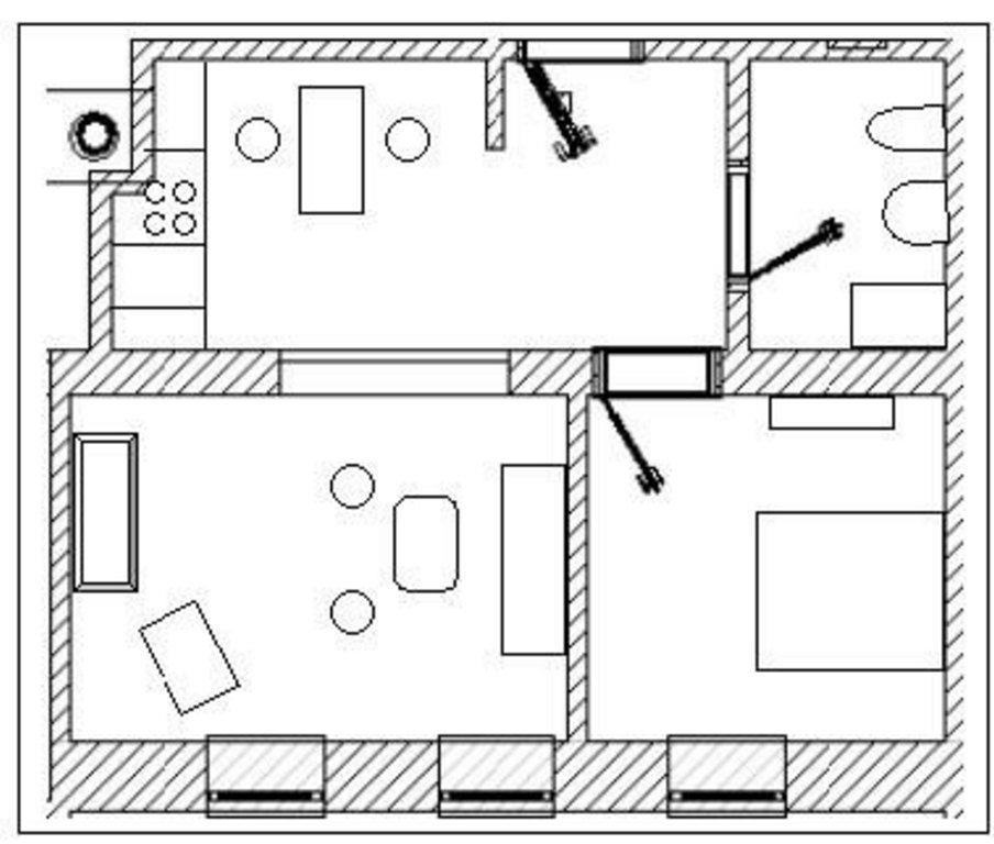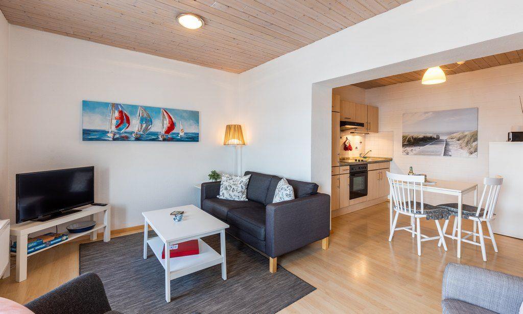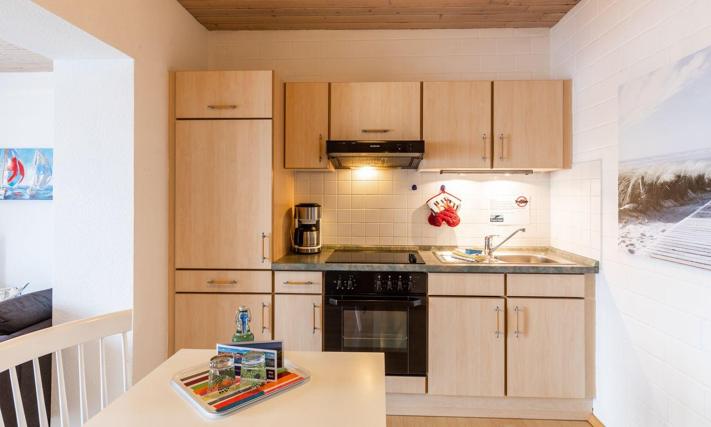 Die Ferienwohnung teilt sich auf in einen Wohn-/ Essraum mit offener Küchenzeile (Ceranfeld, Kühl-/ Gefrierkombination, Mikrowelle, Kaffeemaschine, Toaster und Wasserkocher) und Essplatz, ein Schlafzimmer mit Doppelbett (2x 90x200cm) inklusive verstellbarer Lattenroste und ein Badezimmer mit Dusche, WC und Fußbodenheizung. Zudem steht Ihnen ein Balkon zur Verfügung.