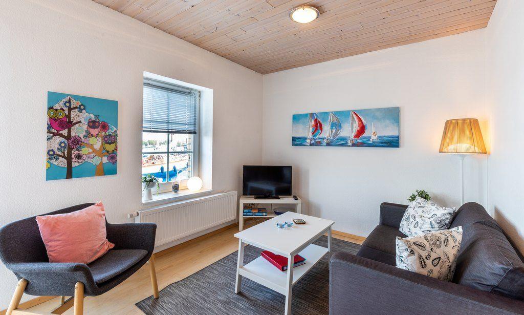 Gemütliche, 43 qm Ferienwohnung im 1. Stock auf der Werft mit Ausblick auf den Hafen und die Schlei, direkt am Wasser gelegen.