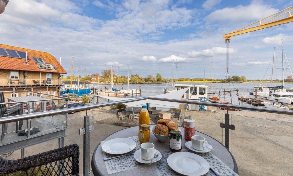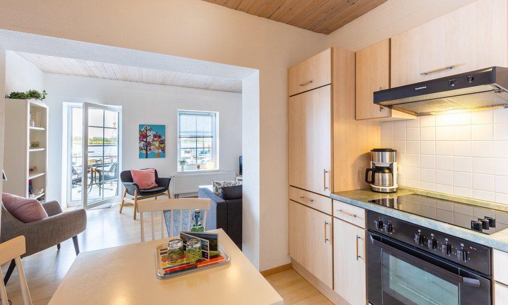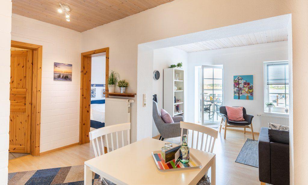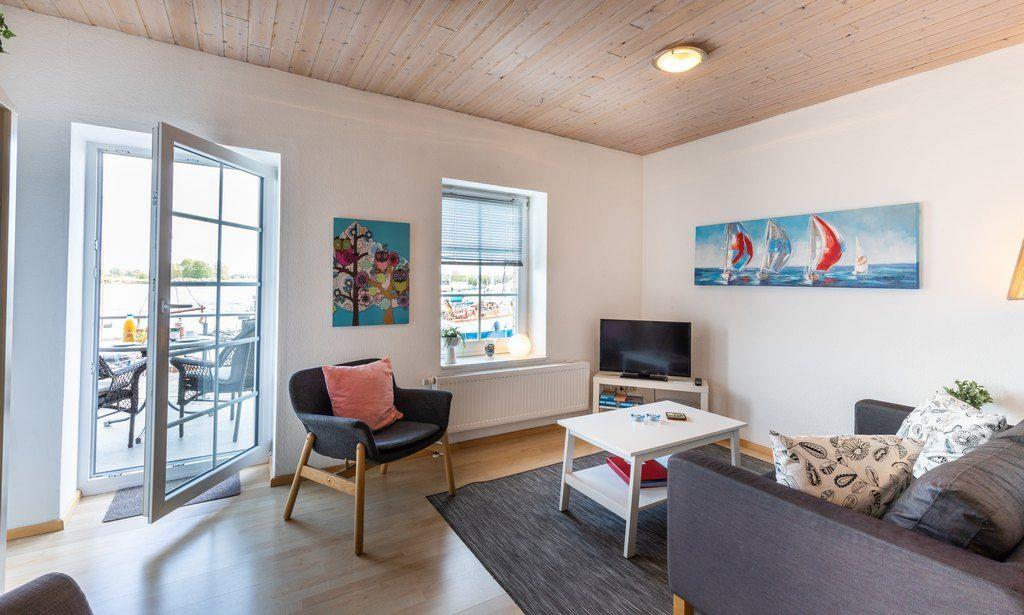 Gemütliche Ferienwohnung mit Hafenblick und Balkon in Bad Arnis, direkt am Wasser und nahe dem Strand.