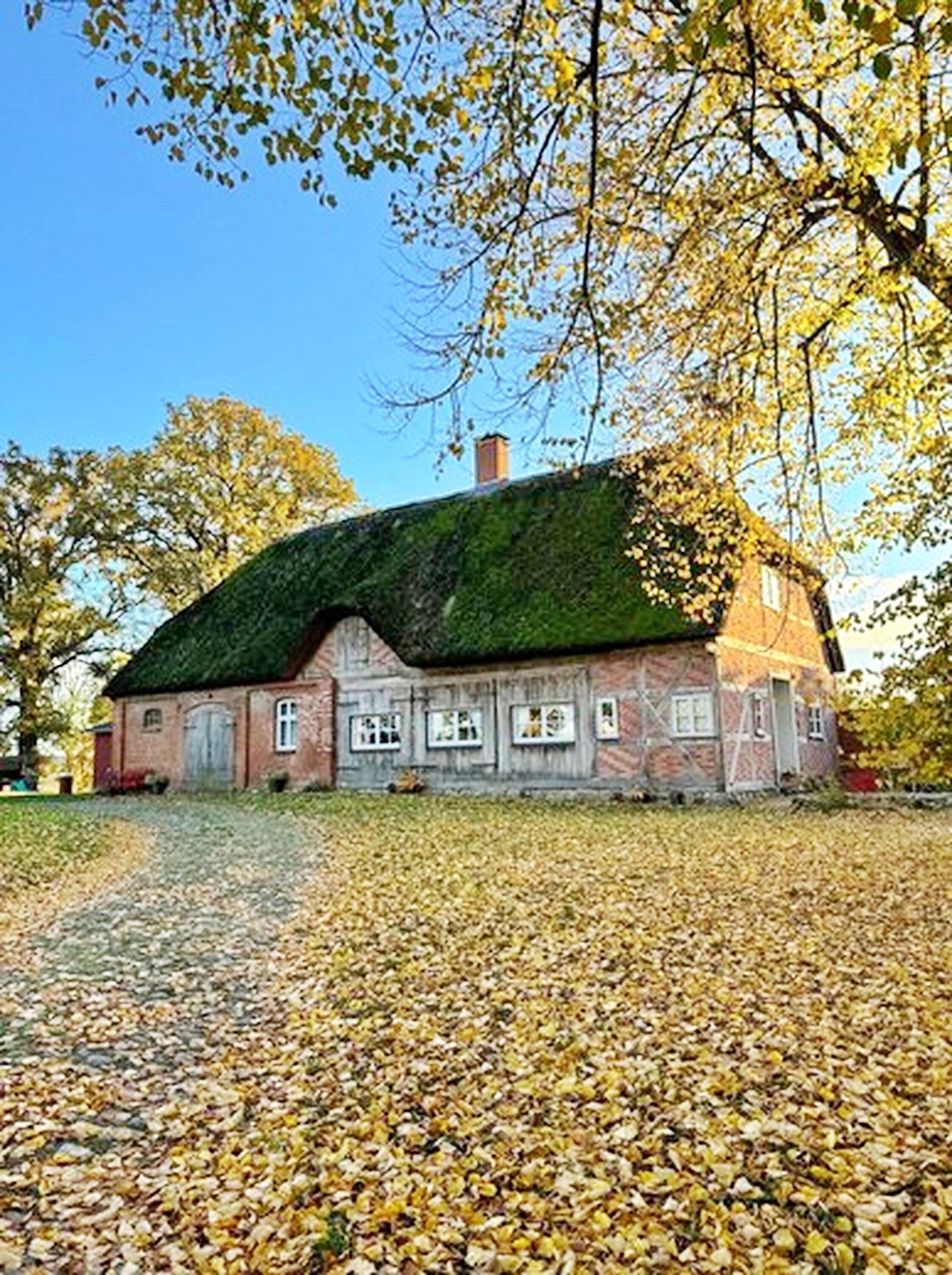 Ein schönes Ferienhaus mit Reetdach. Die ehemalige Kutscherremise befindet sich auf dem Gelände vom Gut Niendorf.