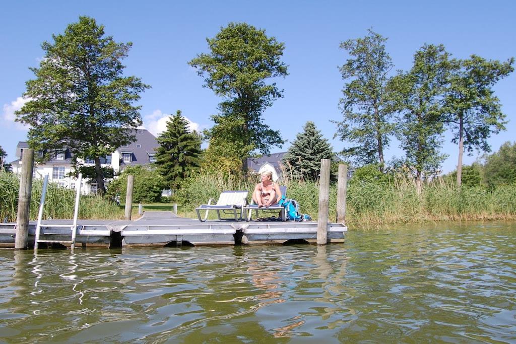 Modernes Ferienhaus am Balmer See mit Wellnessbereich und Blick aufs Achterwasser.