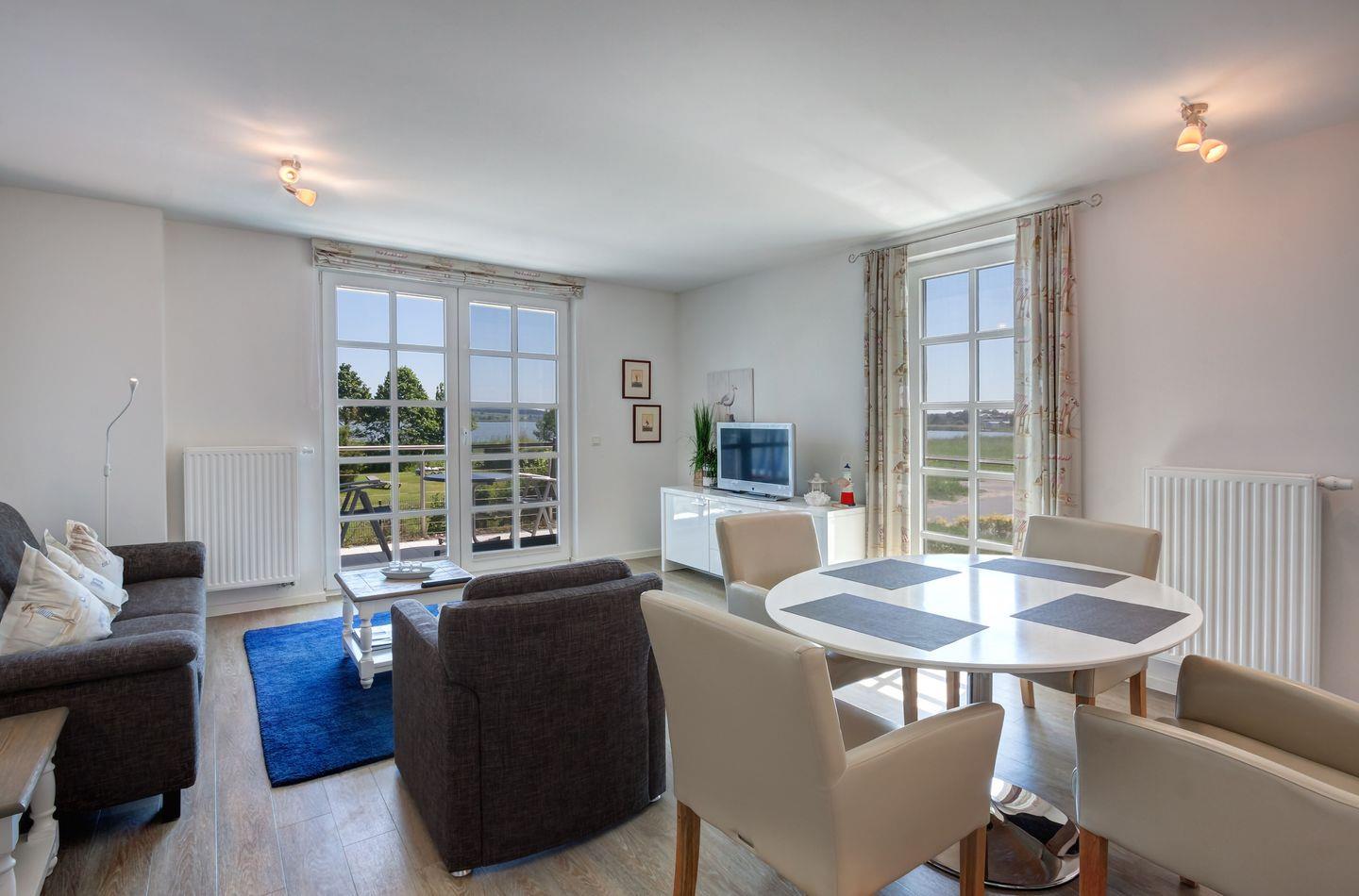 Entdecken Sie einen romantischen Urlaub zu zweit in unserer charmanten 2-Raum-Wohnung 2 mit herrlichem Blick auf das Achterwasser.