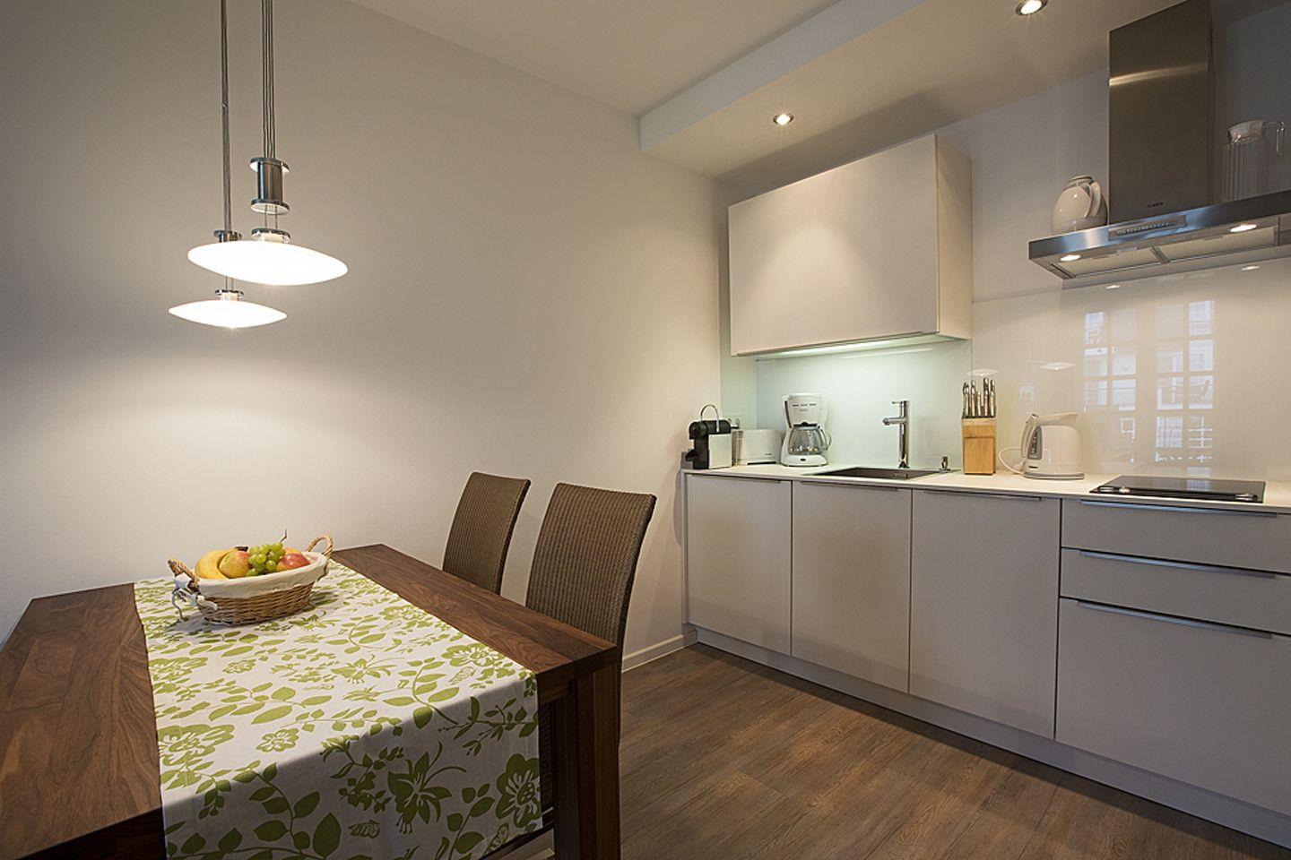 Die Wohnung besticht durch ihre durchdachte Gestaltung, mit einer vollwertigen Einbauküche, die nahtlos in den gemütlichen und lichtdurchfluteten Wohnbereich integriert ist. Hier können Sie nicht nur köstliche Mahlzeiten zubereiten, sondern auch gemeinsame Zeit in einer behaglichen Atmosphäre verbringen.