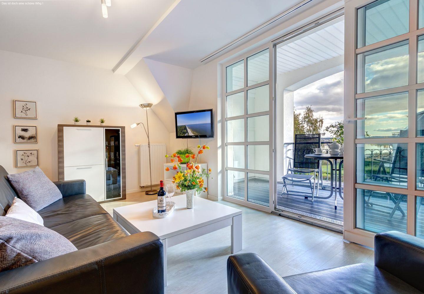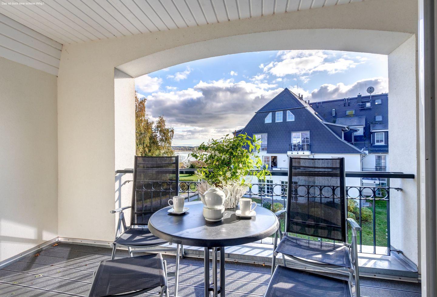 Diese einzigartige Oase bietet Ihnen einen atemberaubenden Blick auf das Achterwasser direkt von der geschützten Loggia des Apartments aus, die Sie bei jedem Wetter in vollen Zügen genießen können.