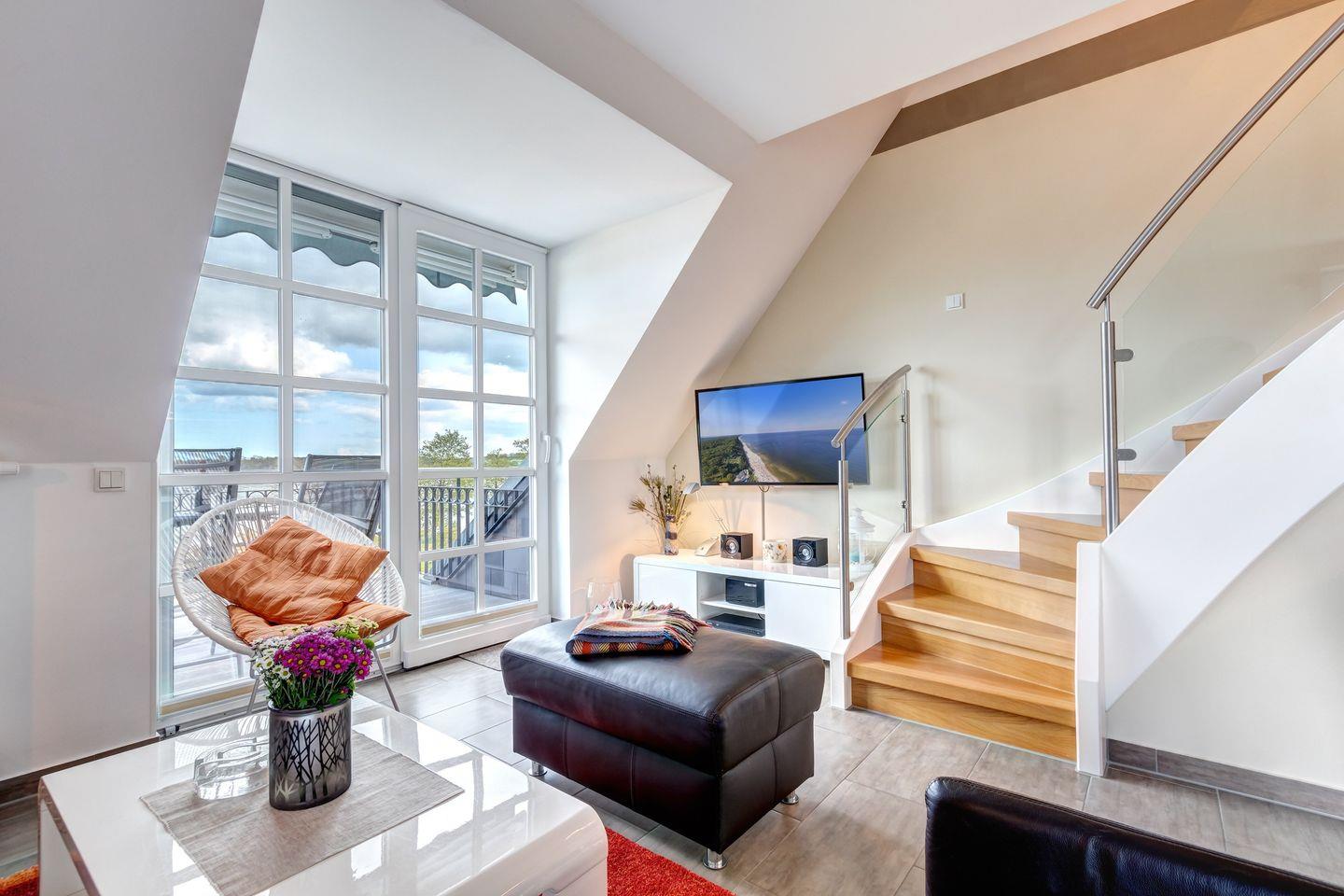 Diese 67 Quadratmeter große, hochwertig eingerichtete Wohnung erstreckt sich über zwei Etagen und ist für 4 Personen oder Familien geeignet. Der Balkon lädt dazu ein, entspannte Urlaubsmomente im Freien zu genießen.