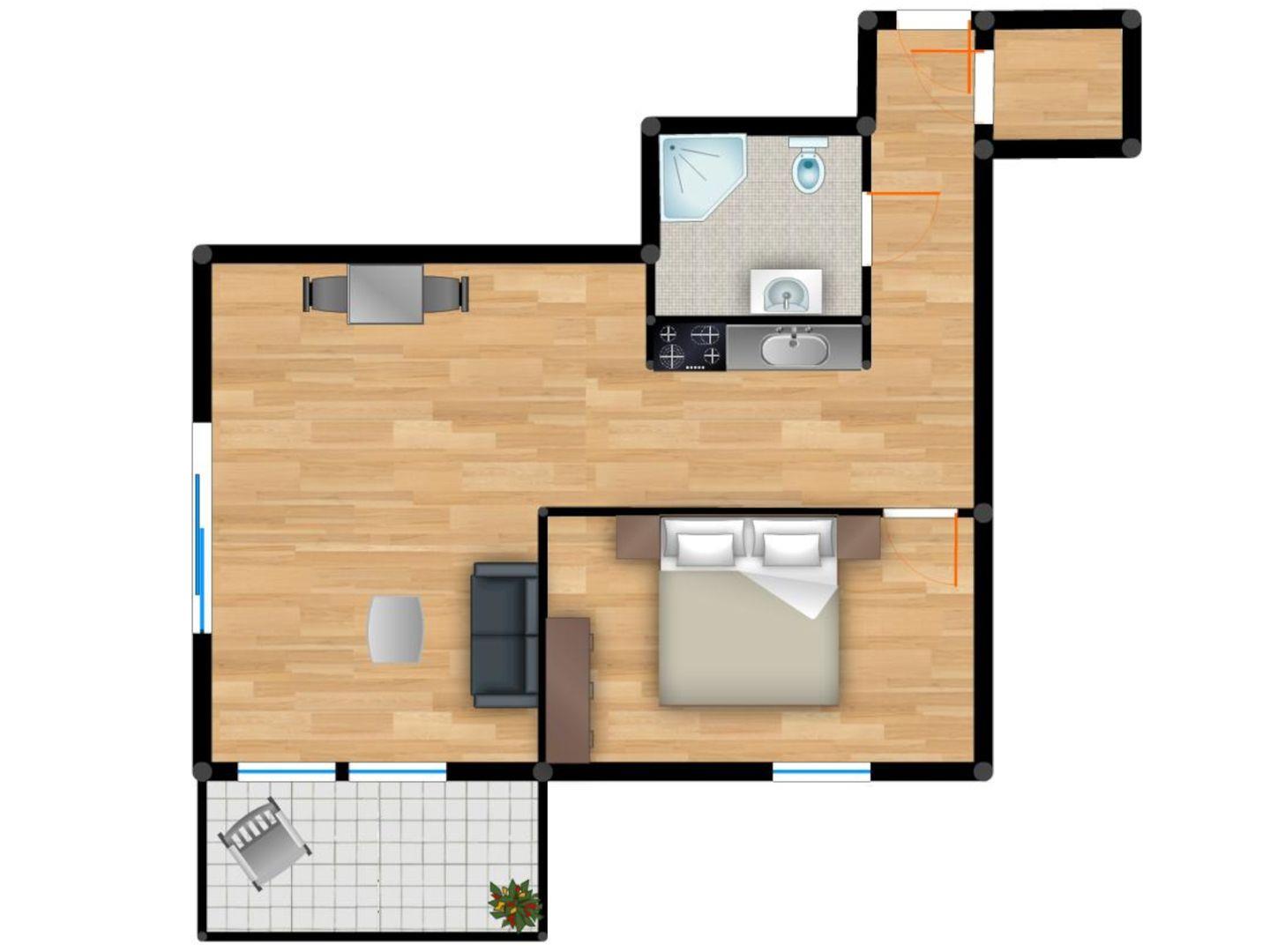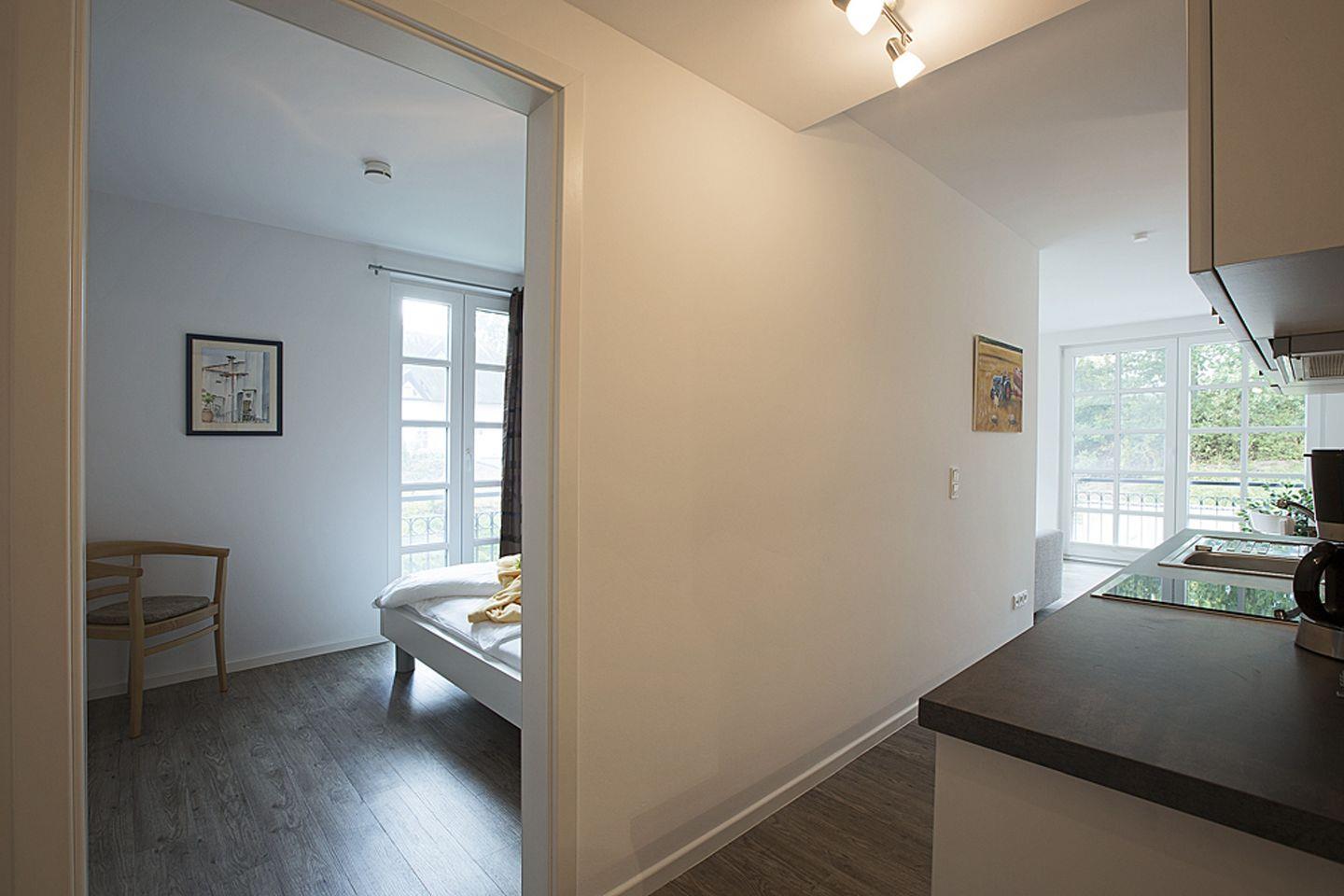 Die Wohnung verfügt über ein vollwertiges Schlafzimmer und im großzügigen Wohnraum befindet sich eine hochwertige Schlafcouch. Die vollausgestattete Einbauküche ermöglicht es Ihnen, Ihre kulinarischen Vorlieben zu entfalten. Handgemalte Original-Gemälde schaffen eine besonders gemütliche Atmosphäre in der gesamten Wohnung.