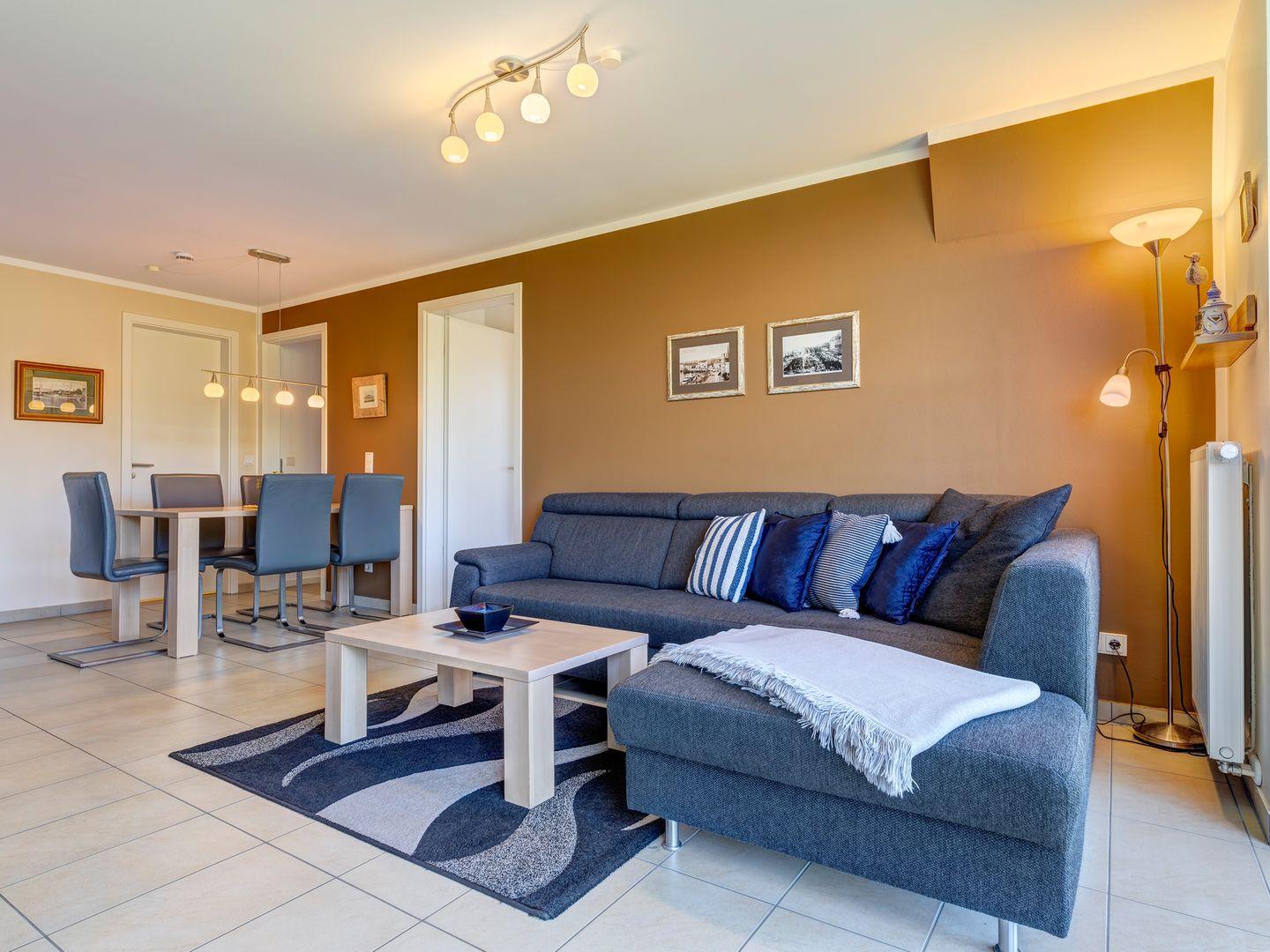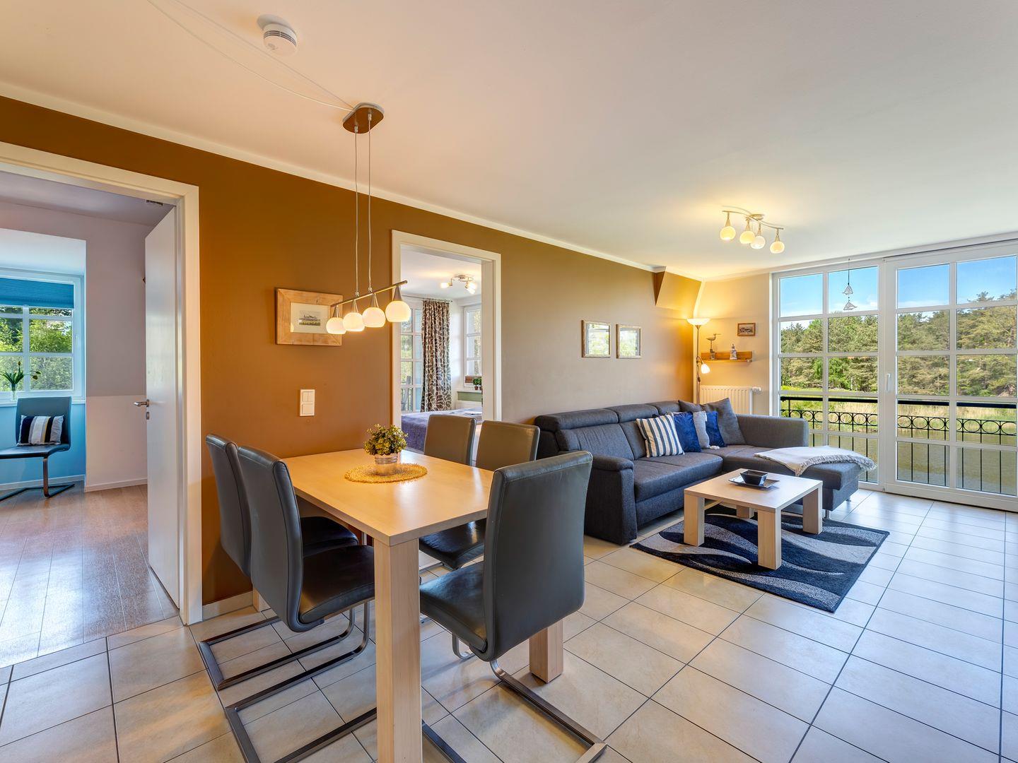 Treten Sie ein und lassen Sie sich vom einladenden Tageslicht und der komfortablen Einrichtung im Wohnbereich verzaubern. Hier erleben Sie entspannte Erholungsmomente, während Sie den Blick auf die idyllische Umgebung genießen. Die 3-Raum-Oase erstreckt sich über großzügige 62 Quadratmeter und bietet zwei vollwertige Schlafzimmer – eine ideale Unterkunft für bis zu 4 Personen und ein Kleinkind.