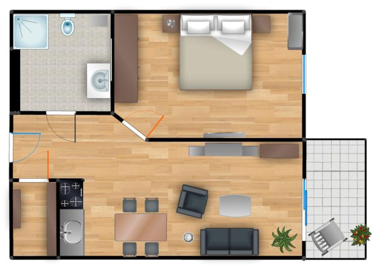 Das Schlafzimmer erwartet Sie mit einem behaglichen Doppelbett und einem großzügigen Kleiderschrank – Ihr persönlicher Rückzugsort für erholsame Nächte. Das moderne Badezimmer, mit Fußbodenheizung, überzeugt mit einer geräumigen Dusche, die Ihre Erholung perfekt abrundet.