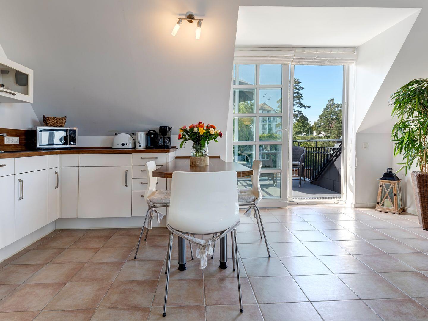 Der besondere Charme des Appartements liegt im offenen Giebel des Wohnbereichs, der das gesamte Ambiente mit natürlichem Licht durchflutet. Die freundliche und hochwertige Einrichtung in modernen Farbtönen sorgt für eine Wohlfühlgarantie, die jeden Urlauber begeistert.