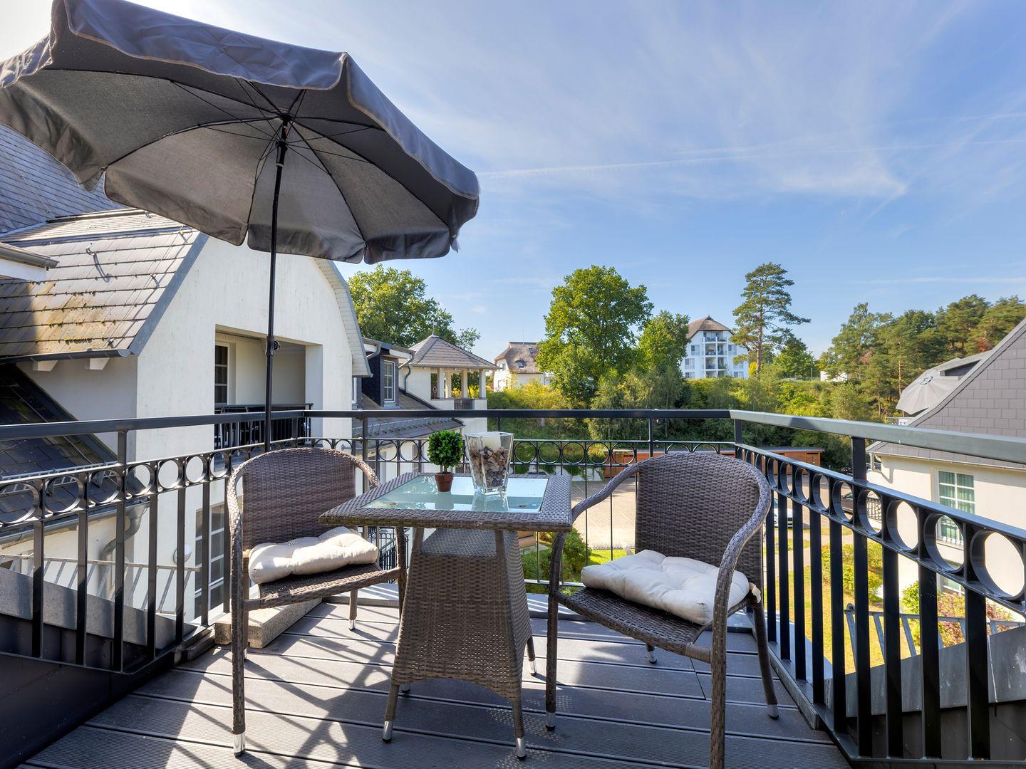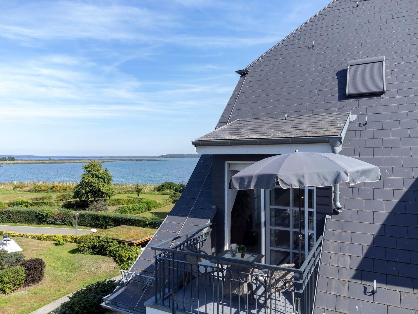 Unser mit 5 DTV-Sternen zertifiziertes Appartement bietet die perfekte Kulisse für einen erholsamen Urlaub. Ideal für zwei Personen und ein Kleinkind bis 3 Jahren, verspricht diese 56 qm große Wohnung eine einzigartige Erfahrung. Zwei Balkone bieten nicht nur eine beeindruckende Aussicht auf das Achterwasser, sondern auch einen Blick auf die reizvolle Anlage der Residenz.