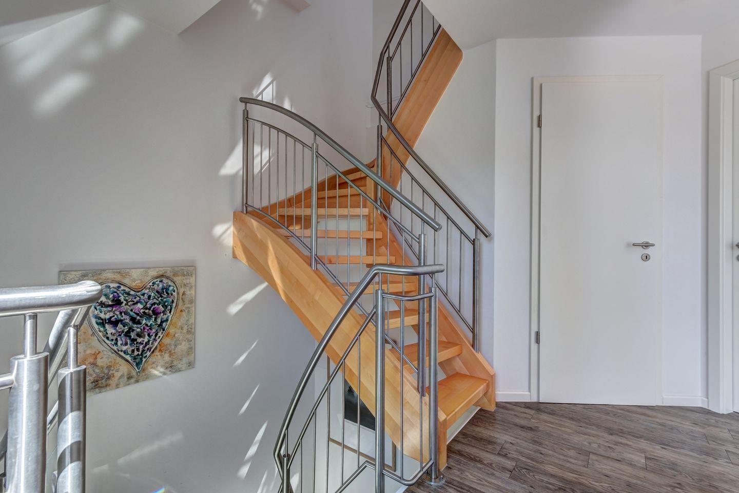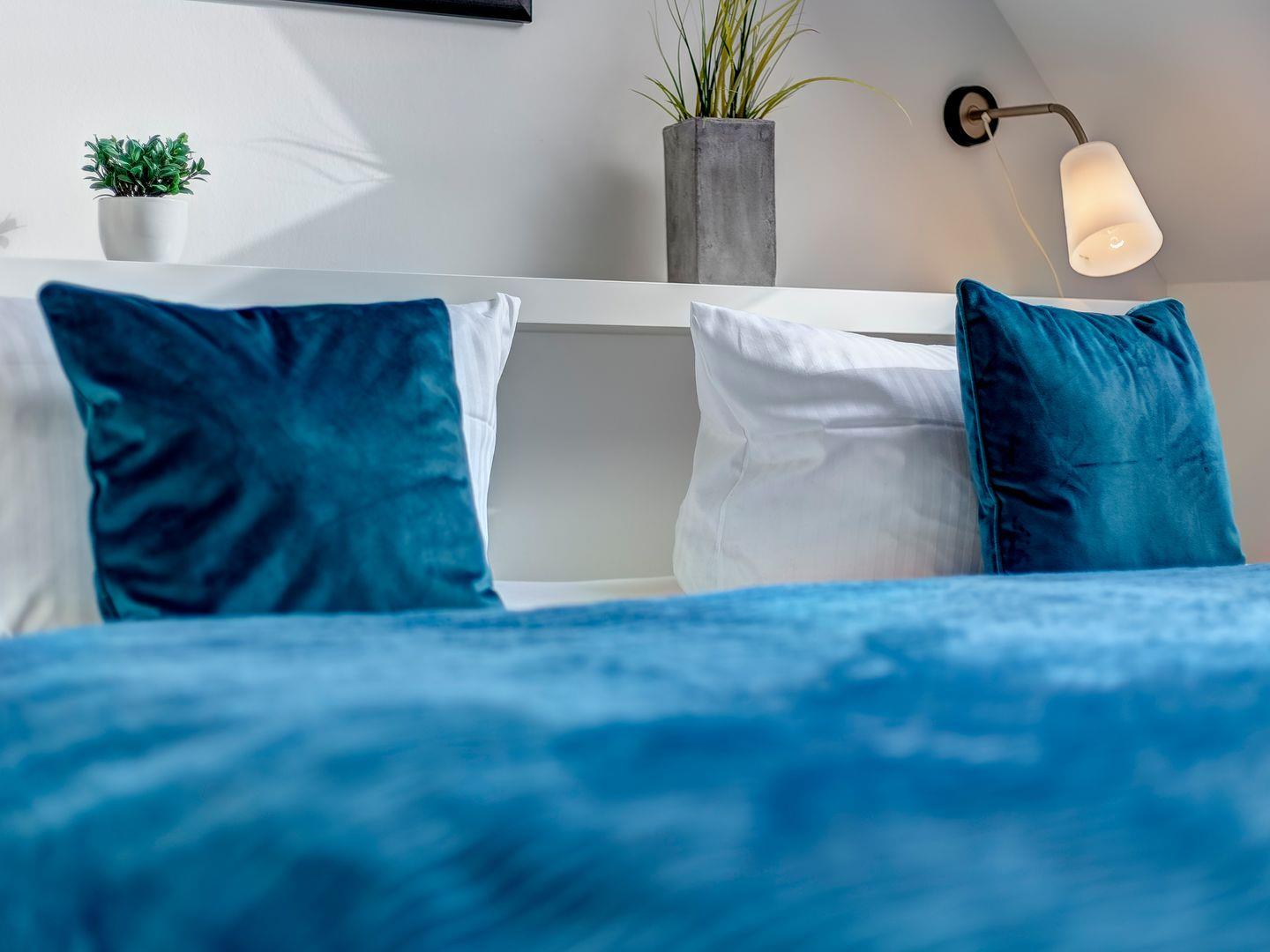 Auf der oberen Etage befinden sich zwei liebevoll eingerichtete Schlafzimmer, die auf angenehmen Schlafkomfort ausgerichtet sind.